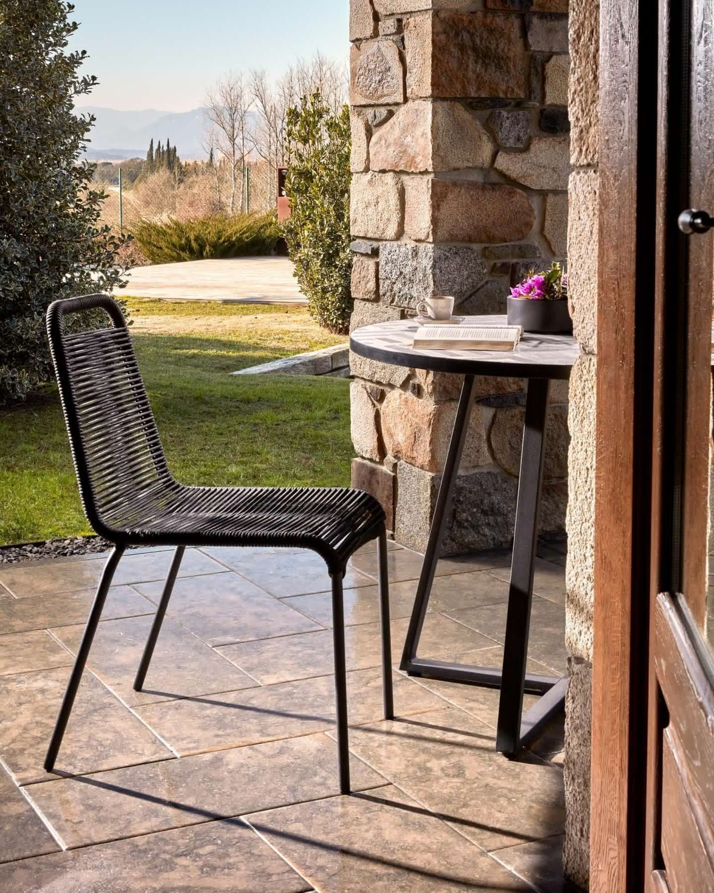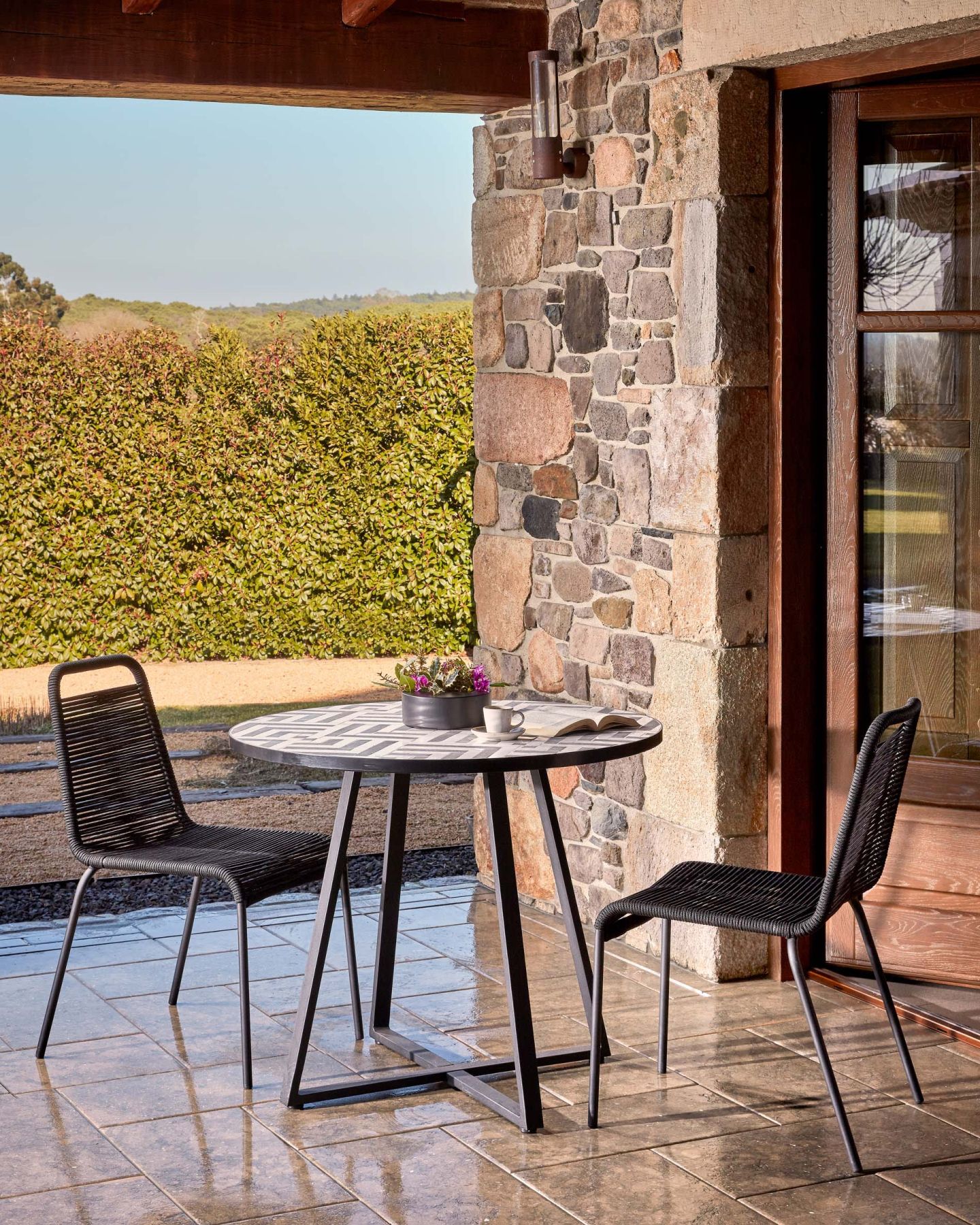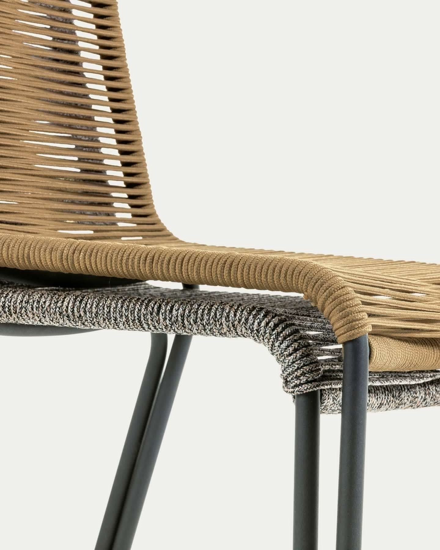 Стул Glenville от фабрики La Forma (ex Julia Grup) – удобный и гибкий предмет уличной мебели, созданный из прочного каната. Стул Glenville впечатляет своим авторским исполнением с первого взгляда. Его плетеное сиденье смотрится удивительно оригинально и интересно. Использованный шнур позволит принять телу максимально расслабленное положение. А его прочность не даст беспокоиться о надежности этого изделия. Добавьте стиля в ваше открытое пространство вместе с Glenville. Стул состоит из металлического каркаса и плетеного сиденья из прочного полимерного шнура (95% полипропилен, 5% полиэстер). Сверху есть специальное покрытие, которое защищает нити от вредного воздействия ультрафиолета. В зависимости от выбранной модели, цвет шнура может быть бежевым, белым, чёрным. Каркас сделан из оцинкованной стали. Поверхность покрыта черной порошковой краской, которая защищает металл от негативного воздействия влаги. Ножки высотой 45 см имеют трубчатую структуру, оснащены пластиковыми наконечниками, которые обеспечивают устойчивость на неровной поверхности. Максимальная весовая нагрузка – 130 кг. Размеры: ширина – 49 см, высота – 84 см, глубина – 59 см, глубина сиденья – 44 см. Вес – 3 кг. Сборка не требуется. В коллекции Glenville также представлены барные стулья с аналогичным дизайном.