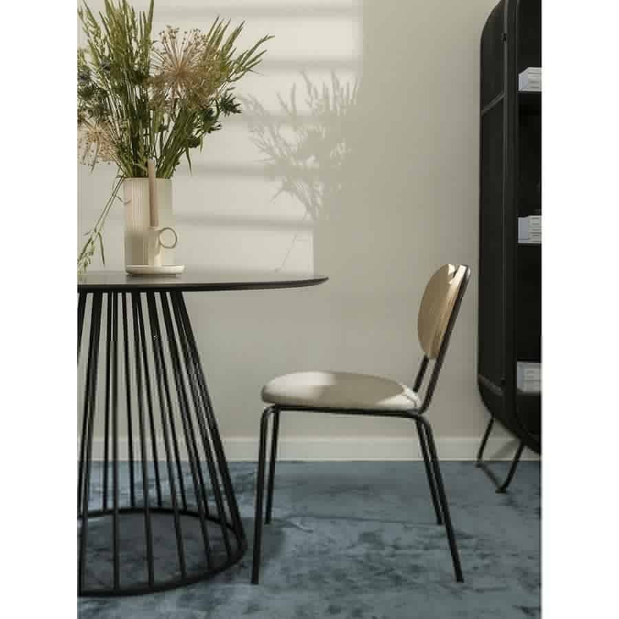 Стул имеет мягкое сиденье с наполнителем из пенополиуретана, обтянутое рогожкой. Прочный и практичный материал обивки не требователен в уходе, не протирается и не скатывается, сохраняя привлекательный вид долгие годы. Ножки мебели выполнены из окрашенного железа, что делает конструкцию надежной и устойчивой. Удобную посадку обеспечивают широкое сиденье и высокая спинка.
