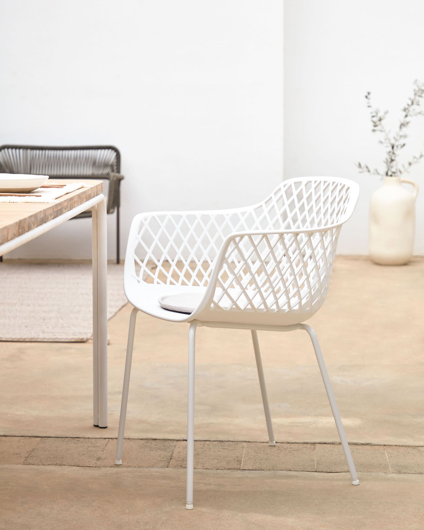 Стул-кресло Quinn от фабрики La Forma (ex Julia Grup) – многоцелевое изделие, которое идеально подходит для дома или улицы. Стул-кресло Quinn по-современному практичное и абсолютно универсальное в дизайне. Эта модель одинаково хорошо будет смотреться как у вас дома, так и в общественном месте в помещении или на улице. Стул отлично гармонирует с любой мебелью. Он практичный и удобный. Это красивая базовая модель для вашей террасы, не сомневайтесь. Модель Quinn представлена в трех цветах – белом, желтом, темно-сером. Сиденье сделано из прочного пластика (полипропилен), который не портится от влаги, быстро сохнет за счет сетчатой структуры, легко очищается от загрязнений. Спинка плавно переходит в подлокотники, имеет дугообразную форму. Все это обеспечивает комфорт, позволяет дополнить сиденье подушкой или пледом. Опора с ножками сделаны из металла, покрыты порошковой краской для защиты от негативного влияния внешней среды. Ножки трубчатые, высотой 45 см. Они имеют пластиковые наконечники, которые улучшают устойчивость стула на неровной поверхности. Максимально допустимая нагрузка – 150 кг. Размеры: ширина – 60 см, высота – 80 см, глубина – 55 см, глубина сиденья – 40 см. Вес – 4,7 кг. Сборка не требуется.