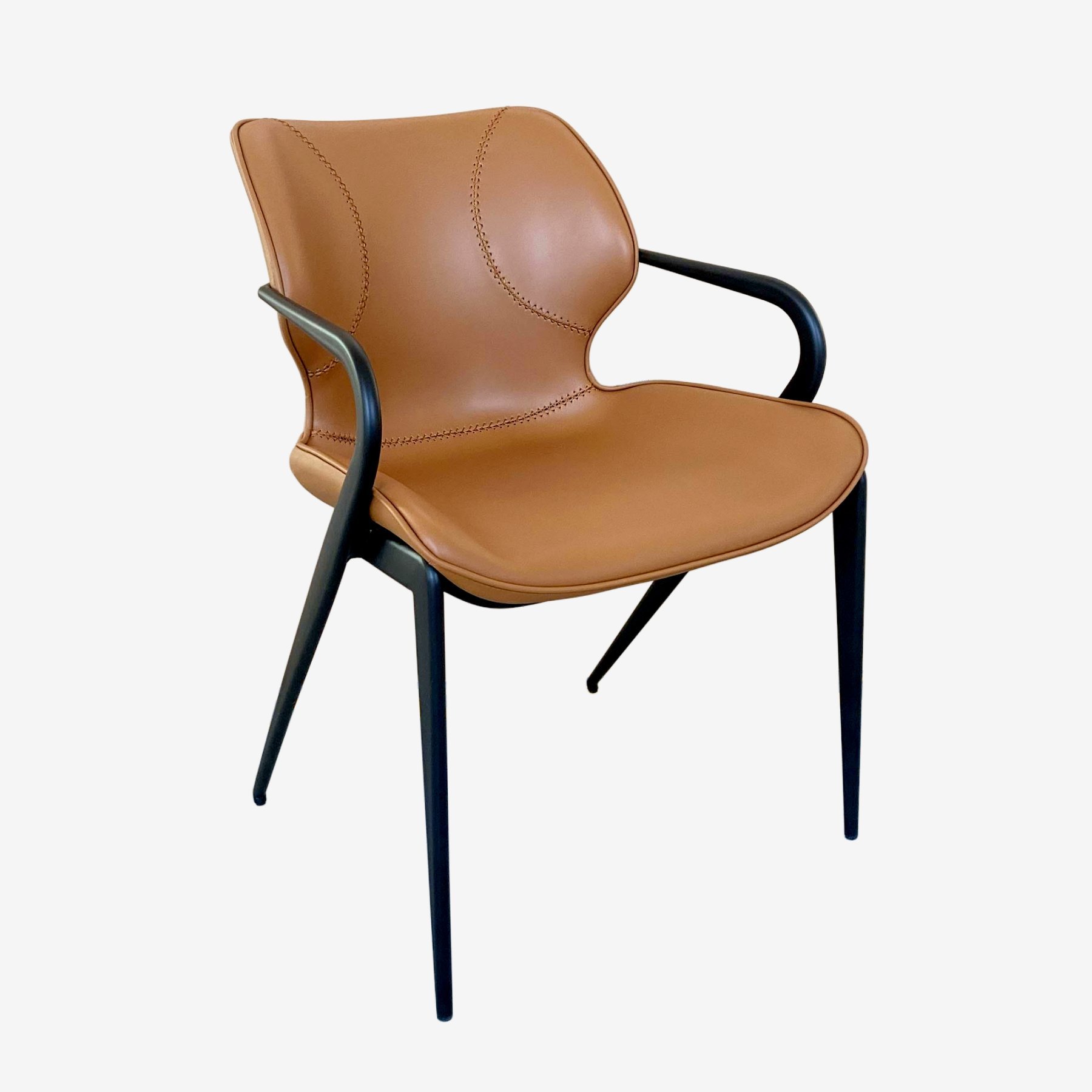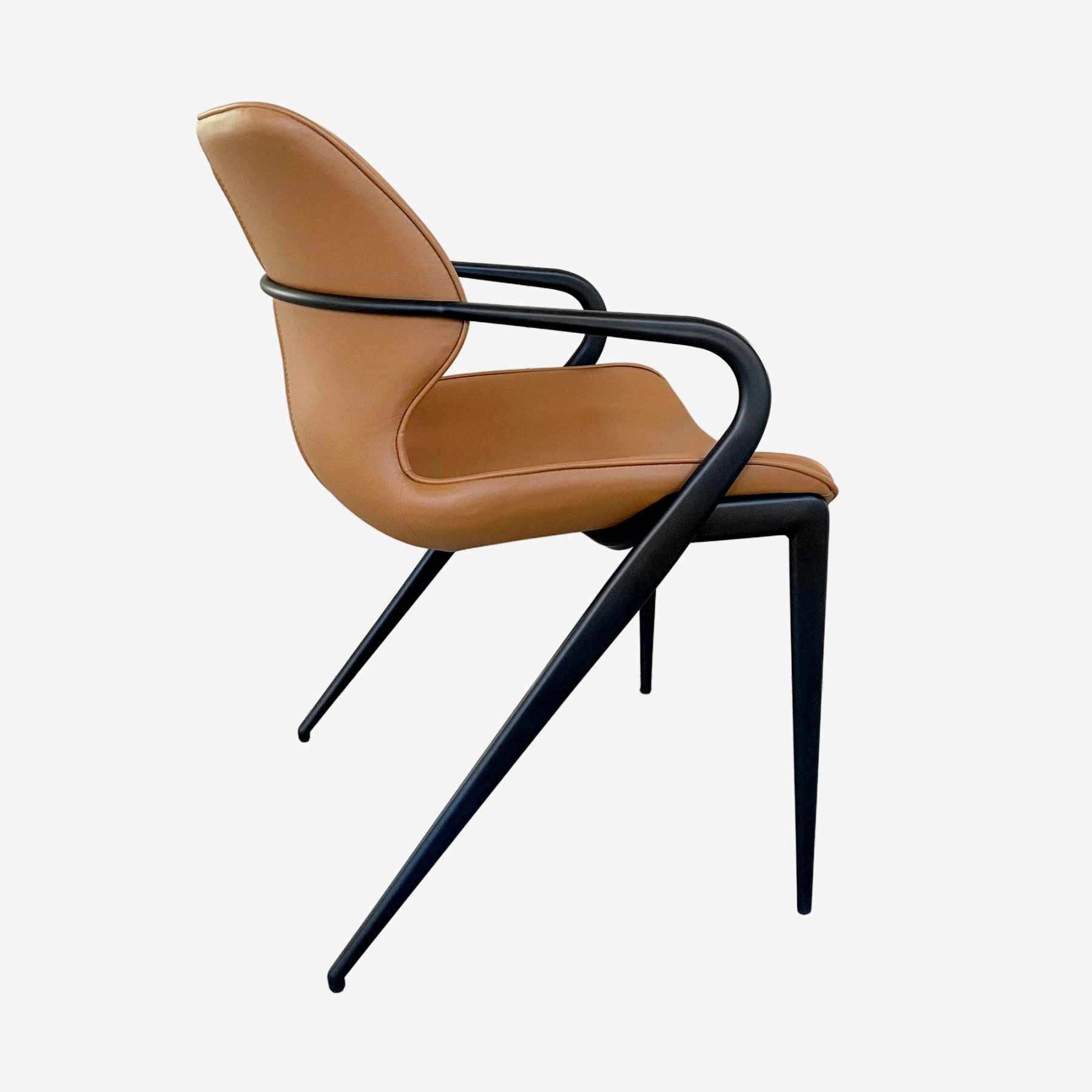 Строгий и колоритный стул Эссен покорит вас не только своими внешними свойствами, но также эргономичностью и практичностью. Стул обит гладкой экокожей, которая легка в уходе. Необычные изгибы стула отлично поддерживают тело сидящего человека в удобном положении, а утонченные металлические подлокотники придают дополнительный комфорт и внешнюю привлекательность данному предмету мебели. Стул Эссен в наличии в нескольких оттенках. Его габариты: Ширина 58 см. Высота 85 см. Глубина 59,5 см. Высота сиденья 45 см. Вес 10,2 кг.
