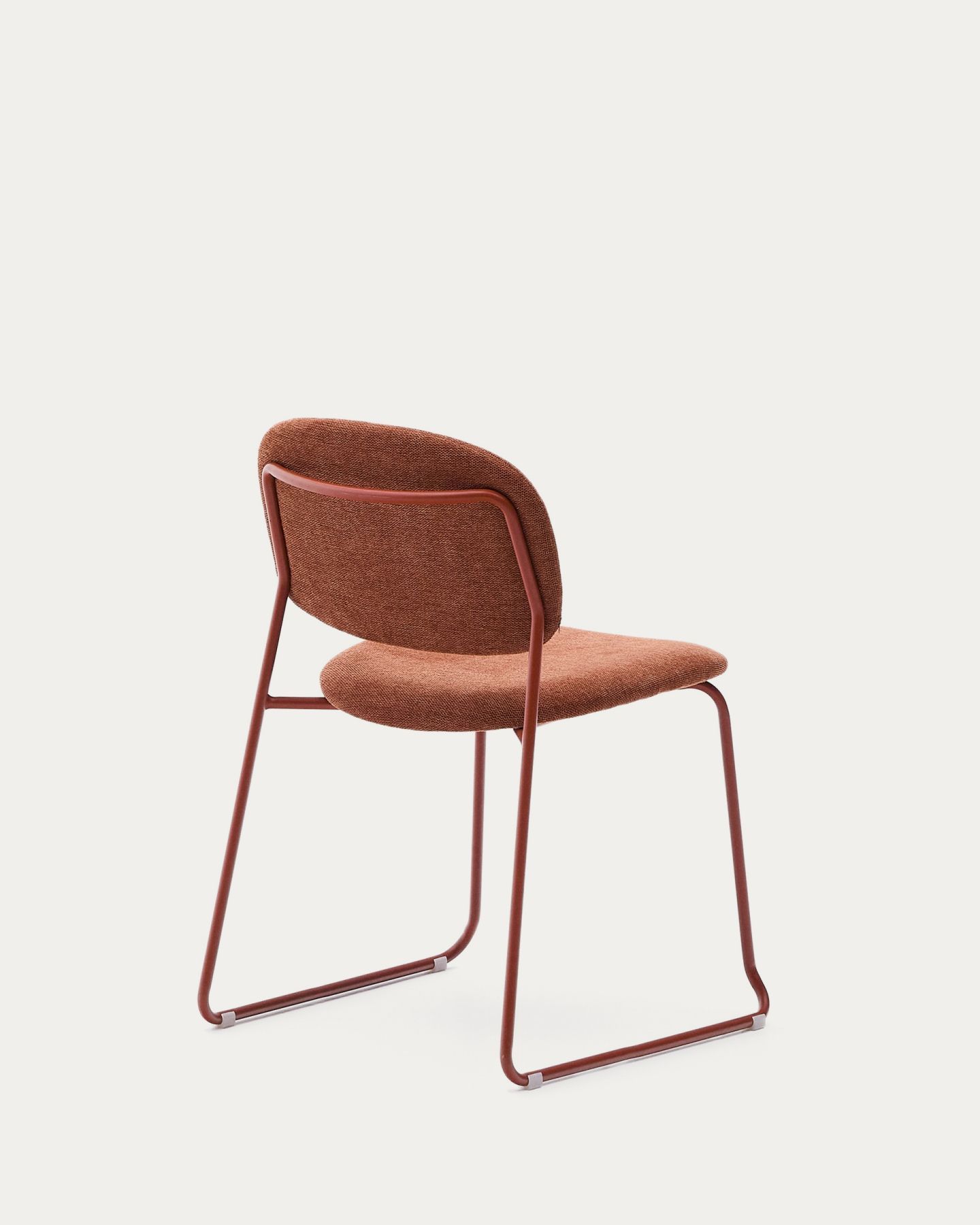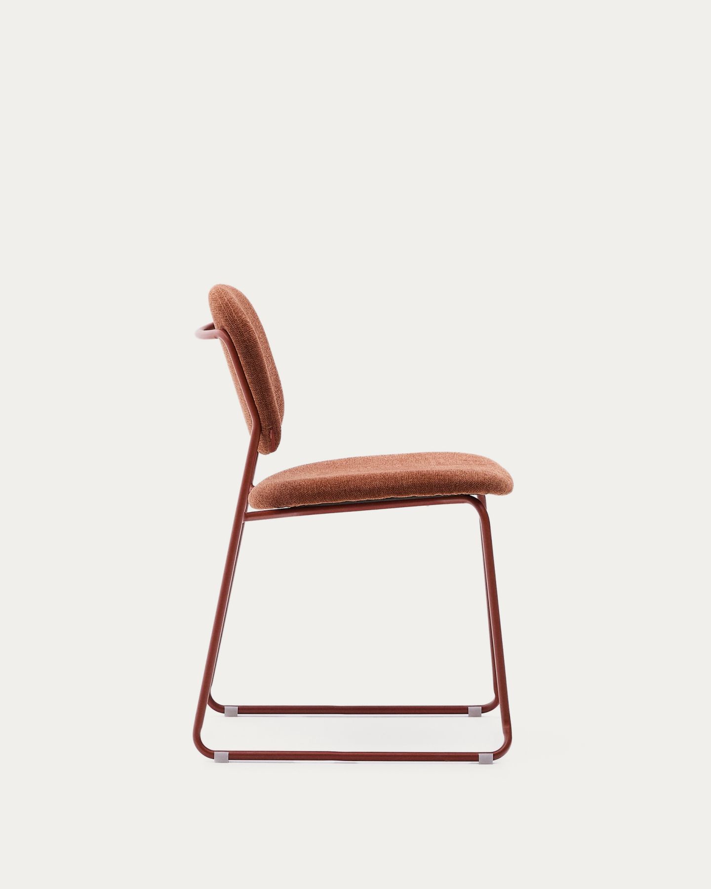 Дизайн дополняют ножки из микротекстурированного металла нежного терракотового тона, что добавляет современный и изысканный штрих. Используемая древесина имеет сертификат FSC Mix Credit, который гарантирует, что она изготовлена из смеси материалов из сертифицированных FSC лесов и контролируемой FSC древесины. Каждый стул уникален благодаря тщательному выбору ясеневого шпона, что гарантирует естественные вариации в дизайне, делая каждое изделие эксклюзивным.