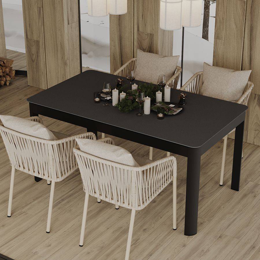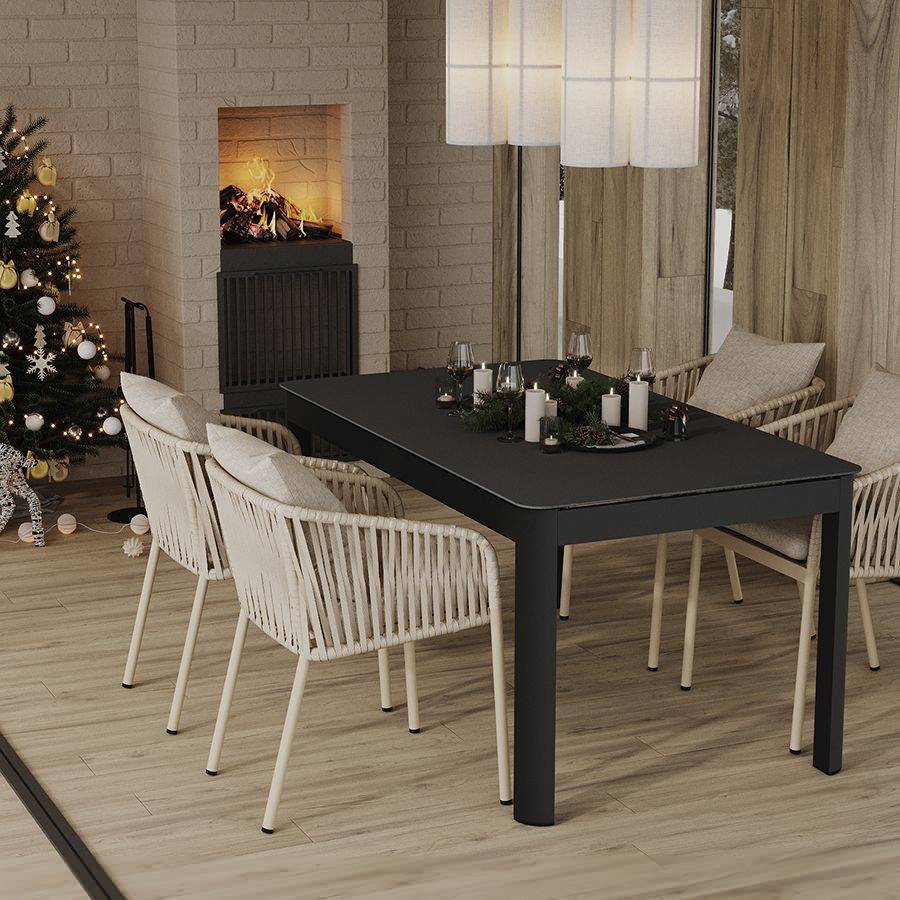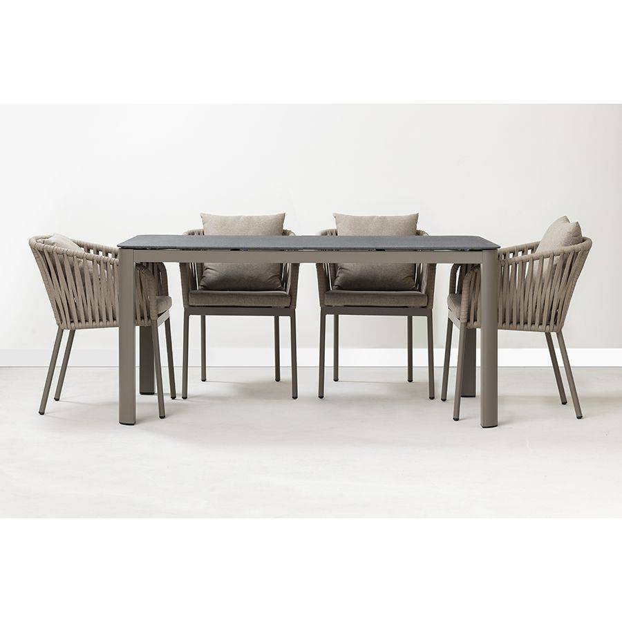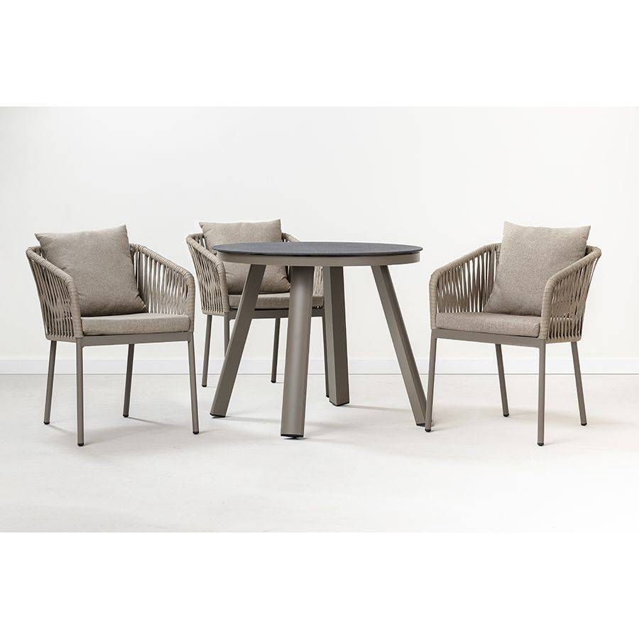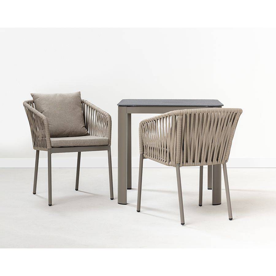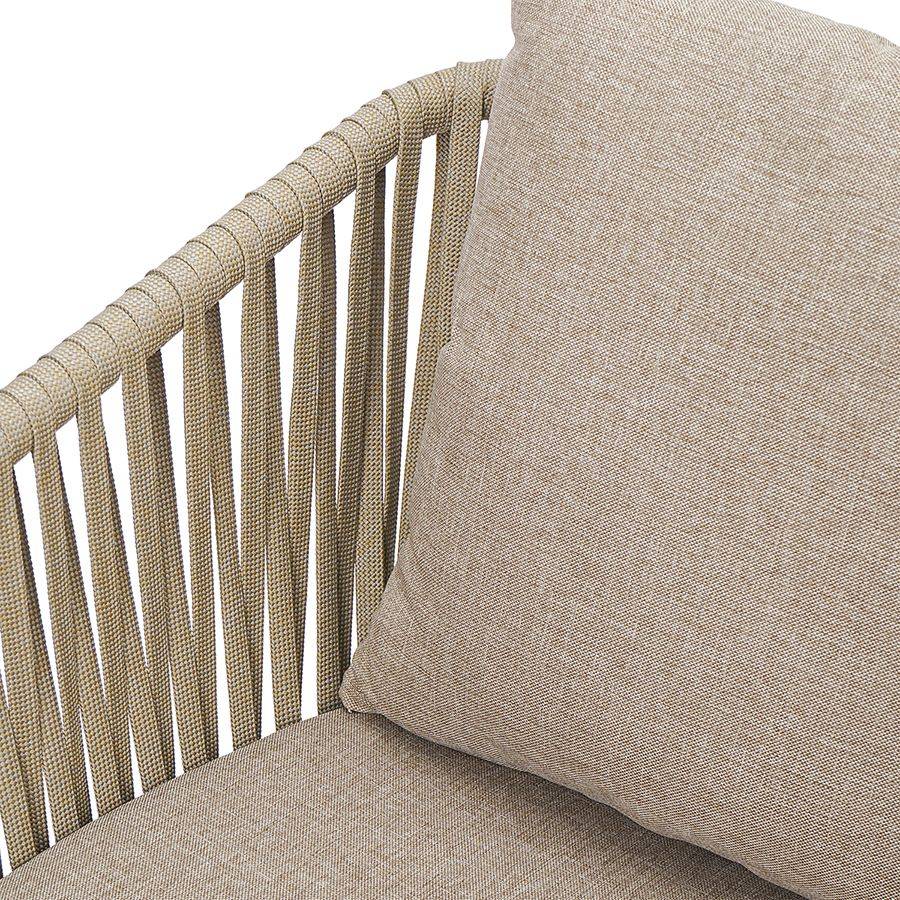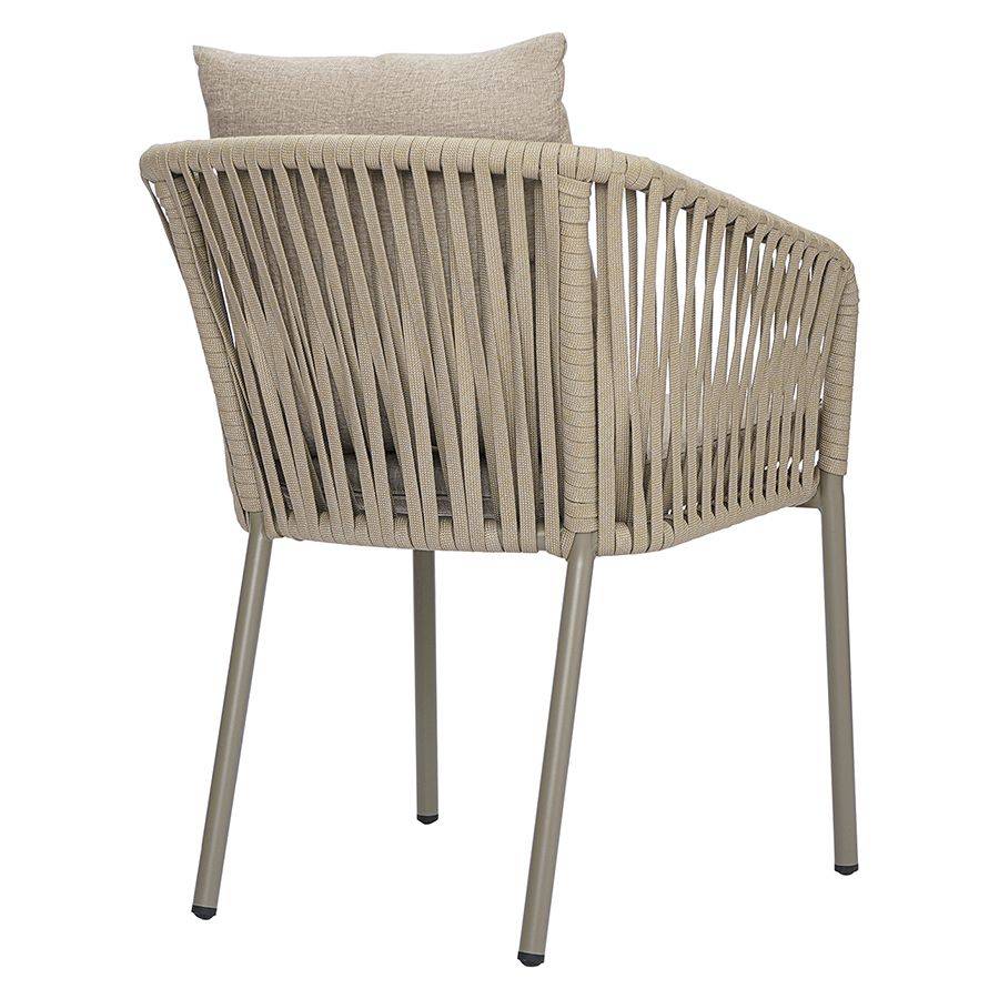 Благодаря надежному основанию из алюминия этот стул прослужит вам долгие годы, сохранив привлекательный вид и первоначальные характеристики. Материал прочный, не подвержен коррозии. Высокая спинка, плавно переходящая в подлокотники, обеспечивает удобство при сидении и делает дизайн интересным. В комплект входят подушки с чехлами из полиэстера и мягким наполнителем из пенополиуретана толщиной 5 см, которые создают дополнительный комфорт. Ткань обладает влагоотталкивающими свойствами, устойчива к ультрафиолету. Декоративные элементы, напоминающие ротанговое плетение, смягчают строгие формы каркаса и придают модели необычный вид. Специальные пластиковые накладки на ножках защищают напольное покрытие от царапин.