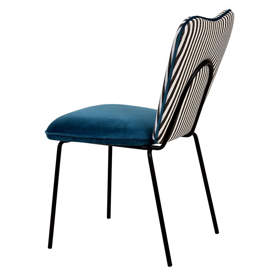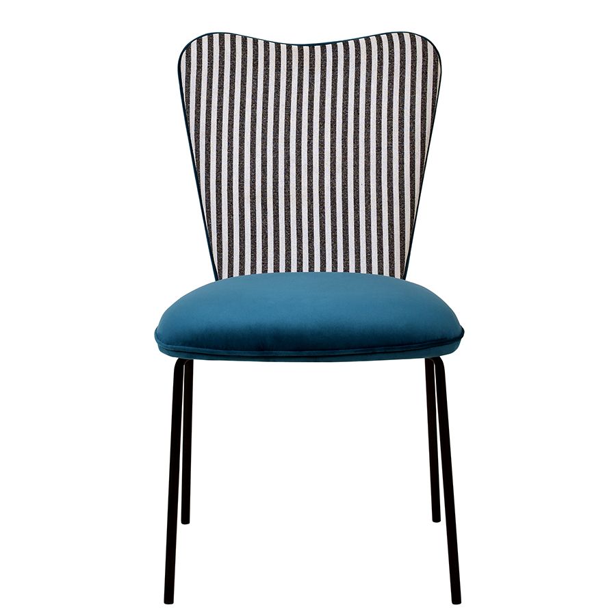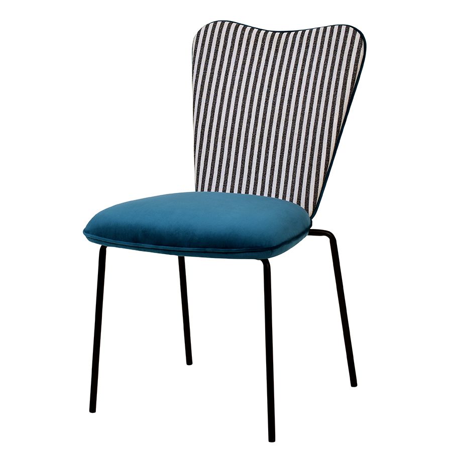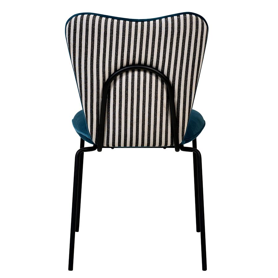 — Спинка необычной формы с полосатым принтом привносит в дизайн интересный акцент.