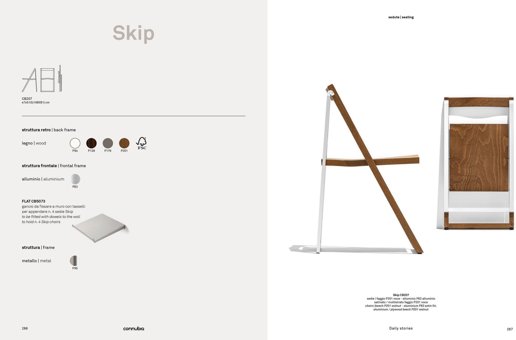 Стул Skip от бренда Connubia. Skip — складной стул с элегантным дизайном, отличительной особенностью которого является комбинация материалов: массив дерева для фронтальной части и алюминий для задних ножек. Легкий и оригинальный, всего лишь 5 см в толщину в сложенном состоянии.