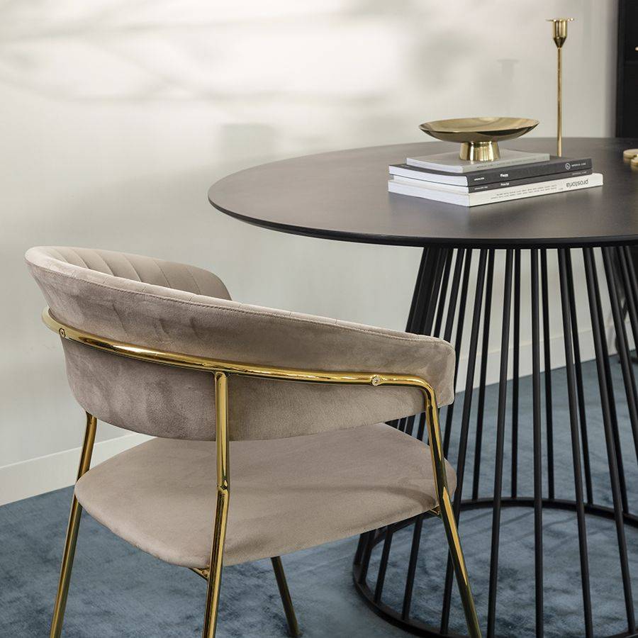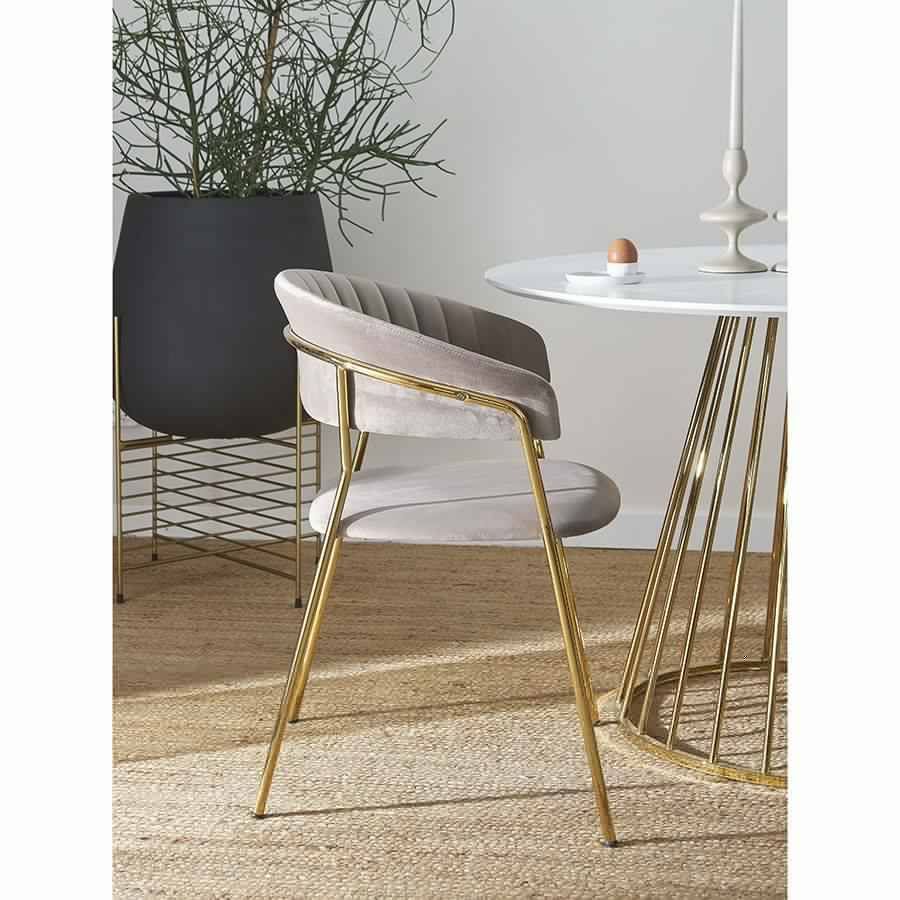 Мягкие сиденье и спинка, обтянутые велюром, создают комфорт во время отдыха на стуле. Материал с бархатистой фактурой обеспечивает красивый визуальный эффект и дарит приятные тактильные ощущения. Помимо высоких декоративных свойств ткань обивки характеризуется долговечностью и устойчивостью к износу. Железные ножки гарантируют конструкции прочность и надежность. Такой тандем материалов позволяет сочетать стул с различной отделкой и декором.