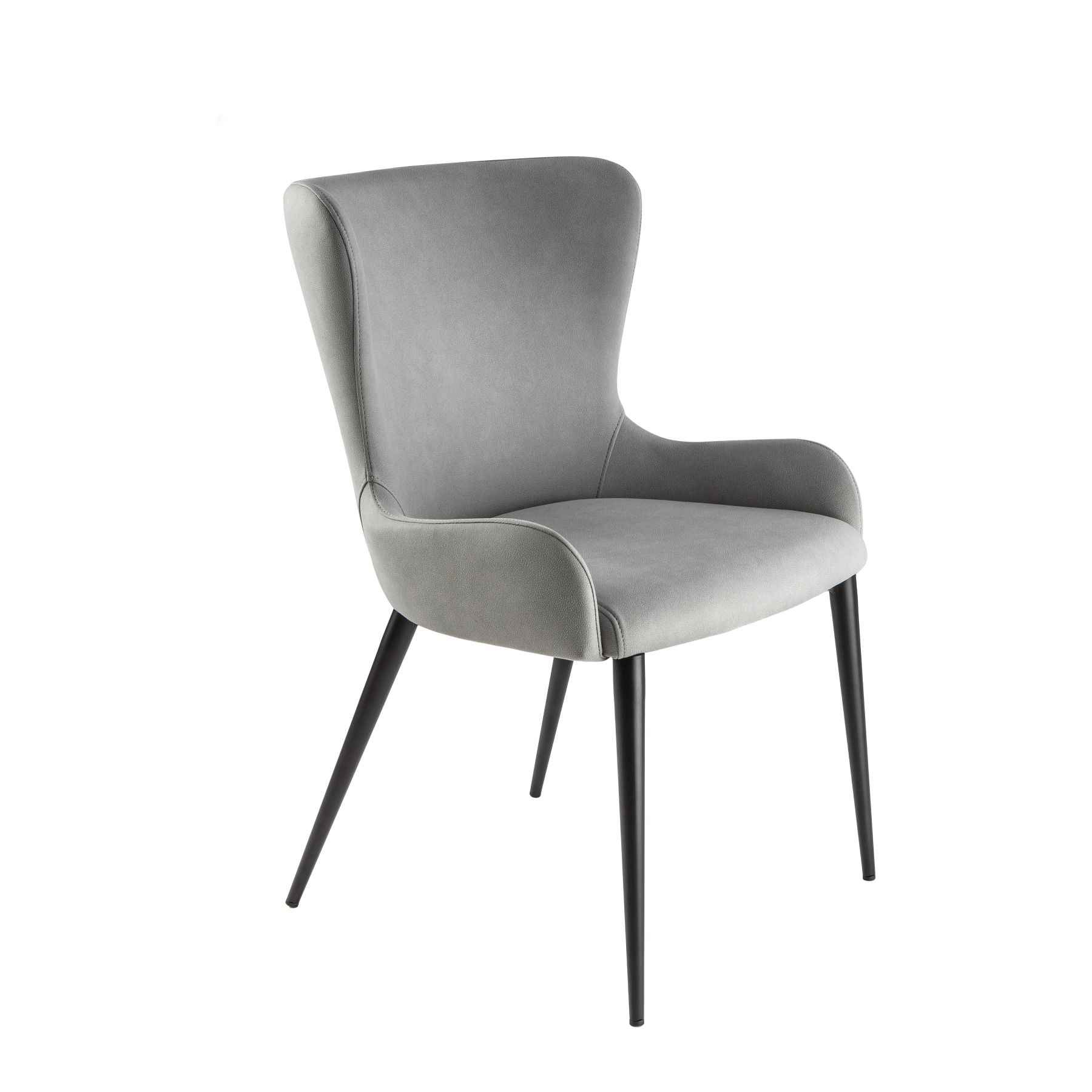 Стул из металла, матово-черная отделка. Сиденье и спинка из фанеры и поролона. Обивка из 100% полиэстера светло-серого цвета. Химчистка.