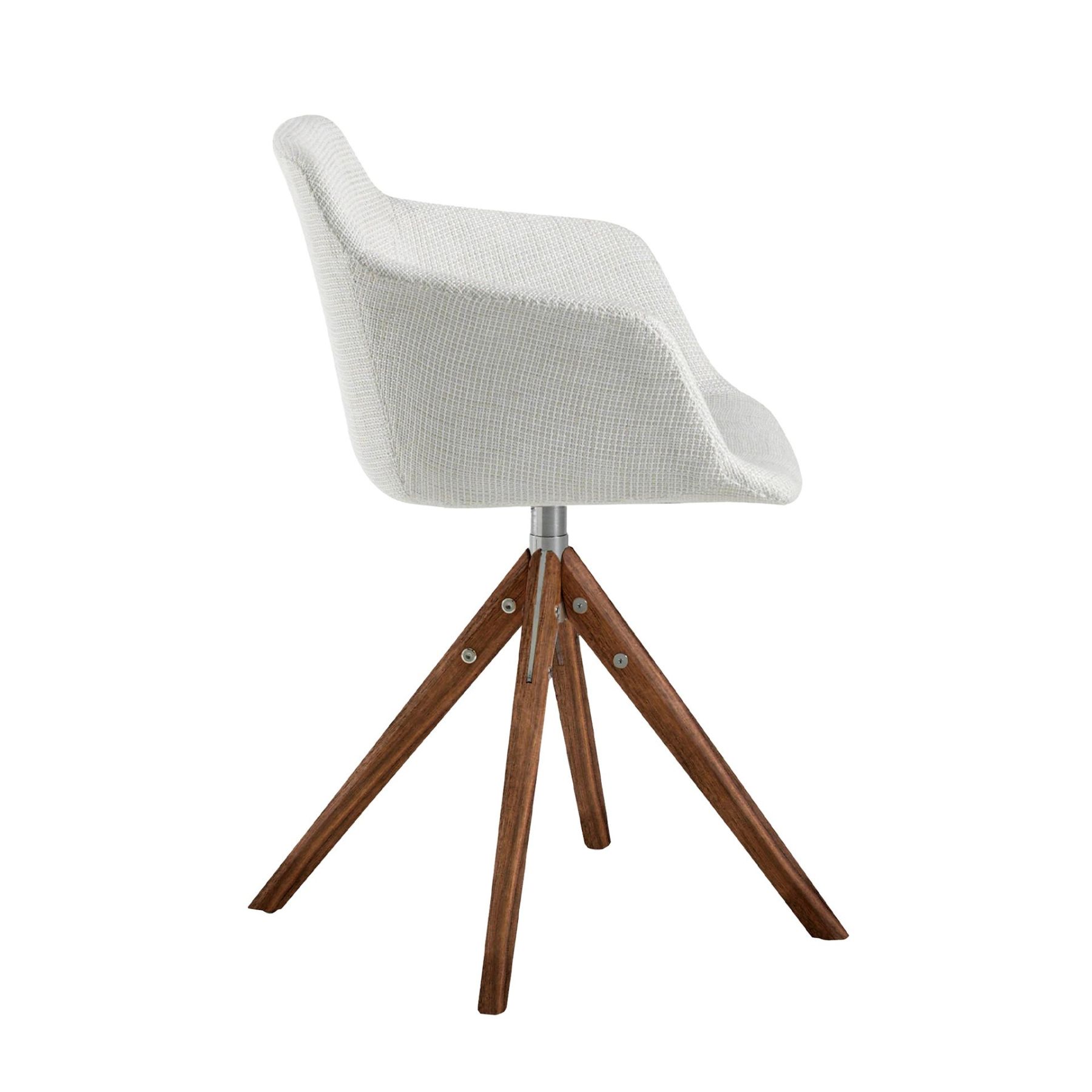 Каркас и ножки этого кресла изготовлены из массива ясеня. Это прочный материал, который обладает сразу несколькими полезными качествами: долговечность, натуральность, легкость. Цельное сиденье — современное конструкционное решение, часто встречаемое в мебели городского типа. Здесь спинка плавно переходит в подлокотники, образуя эргономичную нишу для сидящего в кресле человека.
