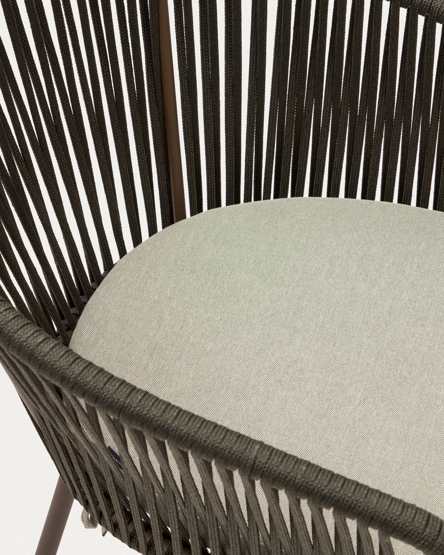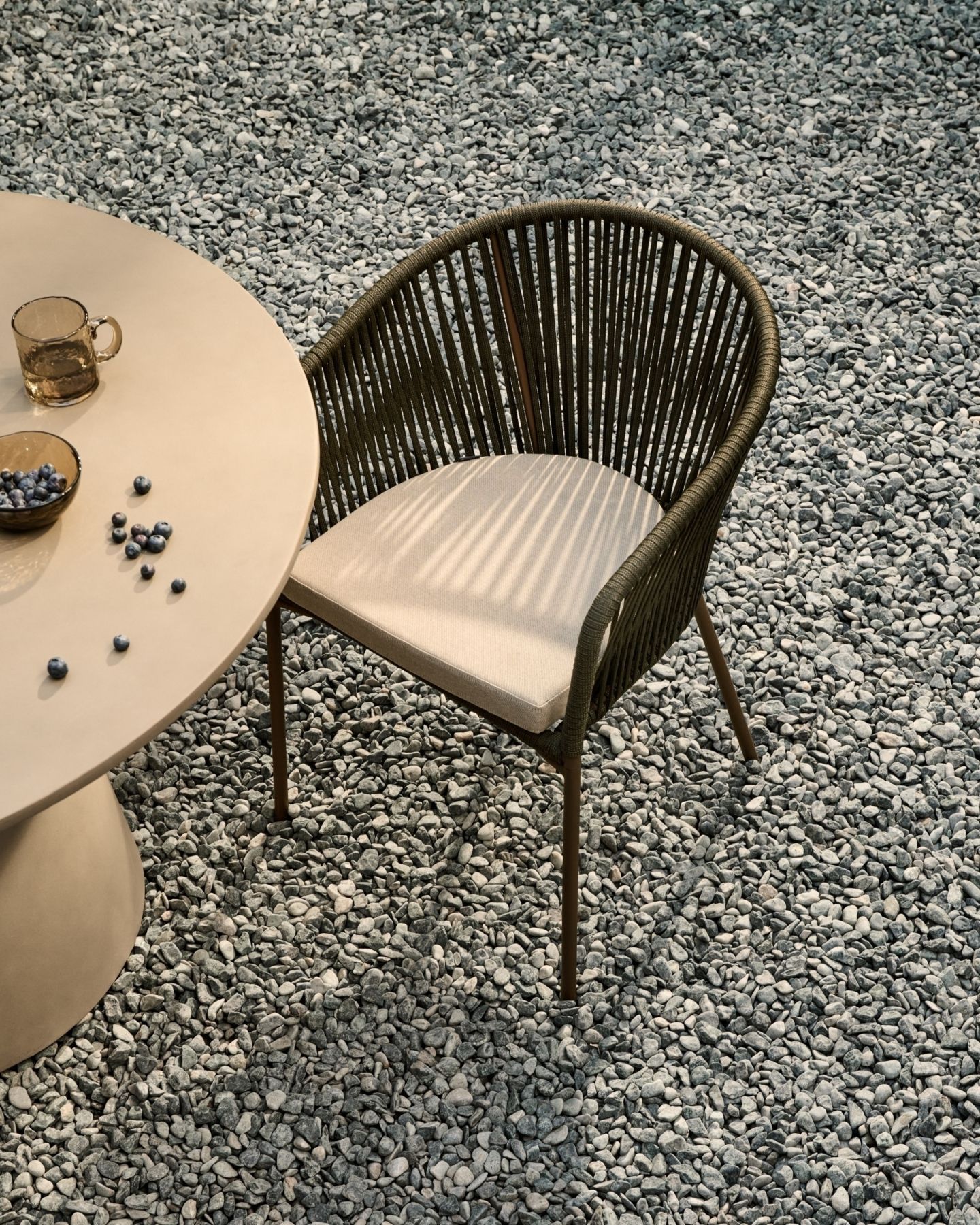 Стул Yanet от фабрики La Forma (ex Julia Grup) – непринужденный и современный вид под любое пространство. Стул Yanet – это ручная плетеная структура, которая обнимает мягкое сиденье. Такая гармония создает особую энергетику, побуждает погрузиться в состояние отдыха. И как же хорошо, что стул можно выставлять на улицу. Ведь свежий воздух и теплое солнце – лучшие попутчики для снятия стресса. Стул имеет металлический оцинкованный каркас, который покрыт черной порошковой краской. Его структура трубчатая, где ширина подлокотников составляет 3 см. Спинка создана из полипропиленового шнура со специальной защитой от ультрафиолета и влаги. Особая ценность в том, что плетение сделано вручную. В зависимости от выбранной модели, цвет спинки можно выбрать черный, темно-зеленый, серый, терракотовый. Стул Yanet поставляется с подушкой с водонепроницаемым съемным чехлом. Ее высота – 5 см. Общая максимальная нагрузка – 130 кг. Размеры: ширина – 56 см, высота – 79 см, глубина – 50 см, глубина сиденья – 42 см. Вес изделия – 4,5 кг. Сборка не требуется. В коллекцию Yanet также входят высокие табуреты в аналогичном дизайне.