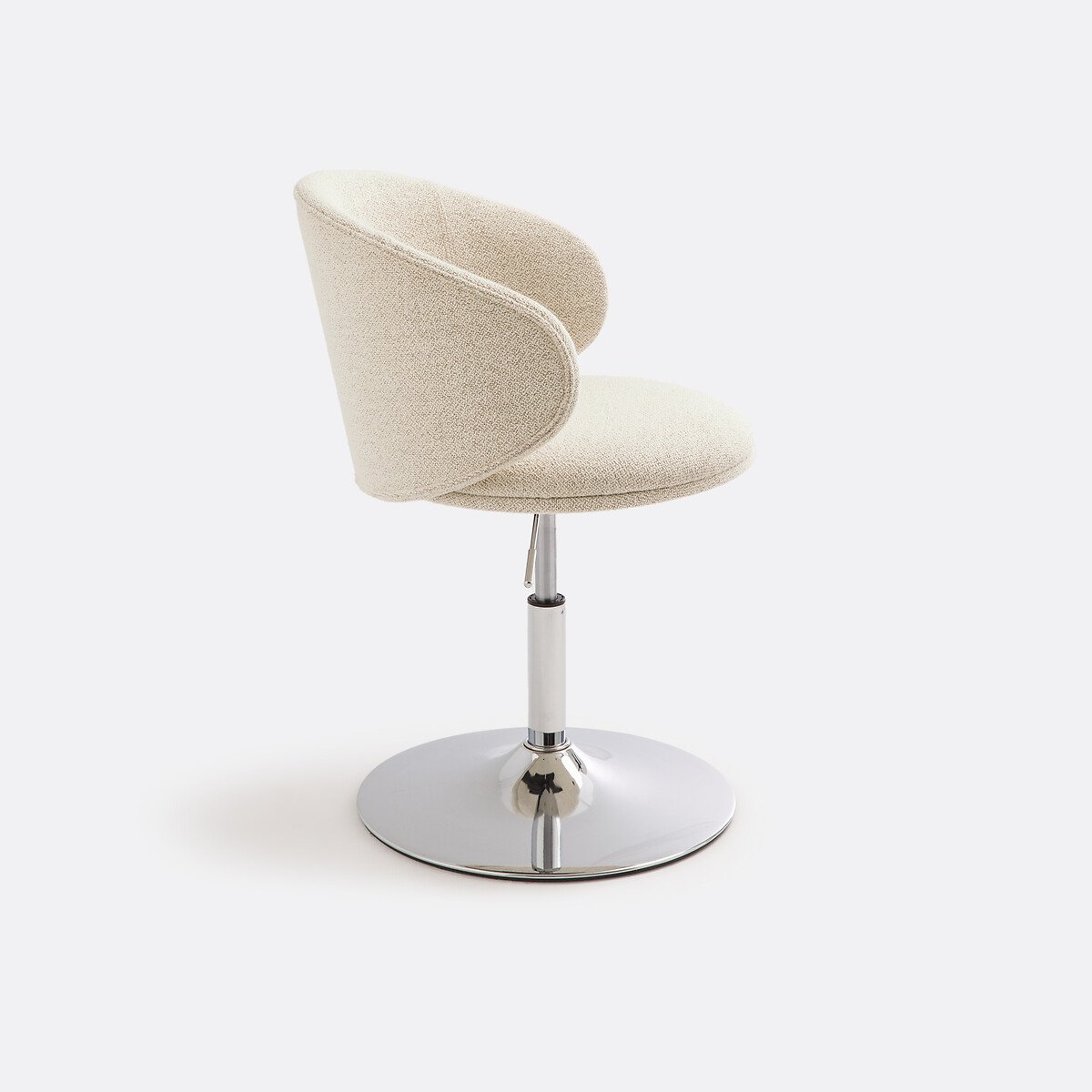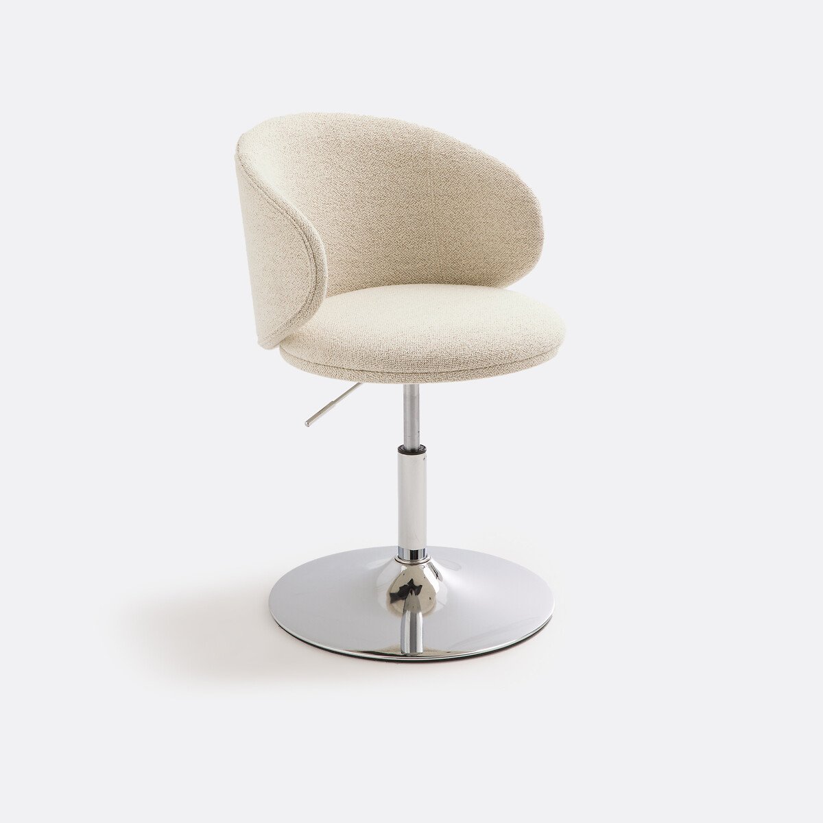 Идеальное сочетание ткани букле и хромированной стали: офисное кресло Jakemo / Джакемо вдохновлено популярным стилем 70-х. Обволакивающая форма и вращающееся сиденье... вы полюбите работать дома.Описание • Вращающееся сиденье с регулировкой по высоте • Обивка из буклированной ткани, 95% полиэстер, 5% акрил, 450 г/м2 • Наполнитель из пенополиуретана 24 кг/м³ • Каркас с покрытием из многослойной фанеры из тополя • Ножка в форме тюльпана из стали с хромированным покрытиемРазмеры • Ширина: 54 см • Высота: 73/89 см • Глубина: 57 см • Сиденье: Ш47 x В45/61 x Г47 см • Высота спинки: 32 см • Вес: 9,5 кгДоставкаСамостоятельная сборка. Доставка осуществляется до квартиры по предварительной договоренности. Внимание! Убедитесь, что товар возможно доставить на дом с учётом его габаритов (проходит в двери, по лестницам, в лифты). • ДРЕВЕСИНА ИЗ УСТОЙЧИВО УПРАВЛЯЕМЫХ ЛЕСОВ. Наличие знака FSC® означает, что древесина, из которой изготовлено изделие, добыта с соблюдением международных стандартов: в процессе добычи не были нарушены права коренных народов, местных жителей и работников, и заготовка велась методом устойчивого лесопользования.Размеры и вес упаковкиОдна упаковка • Ш58 x В42 x Д55 см, 0,015 кг