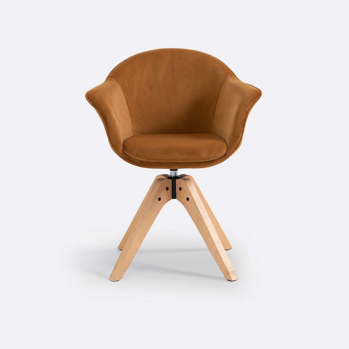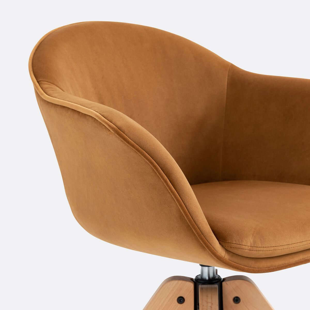 Офисное кресло QUILDA с великолепным сочетанием велюровой ткани и натурального дерева в винтажном стиле, очень прочное и удобное.