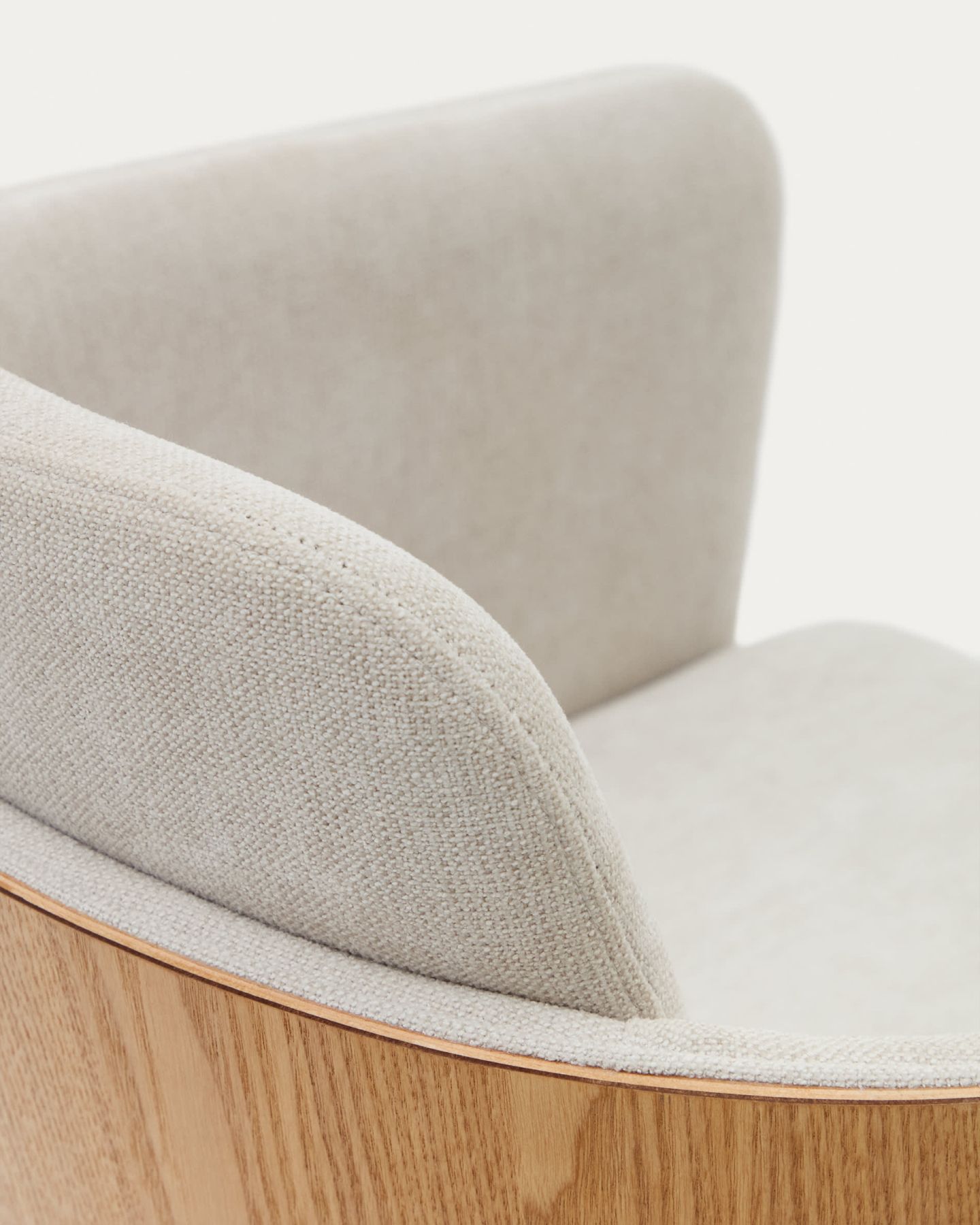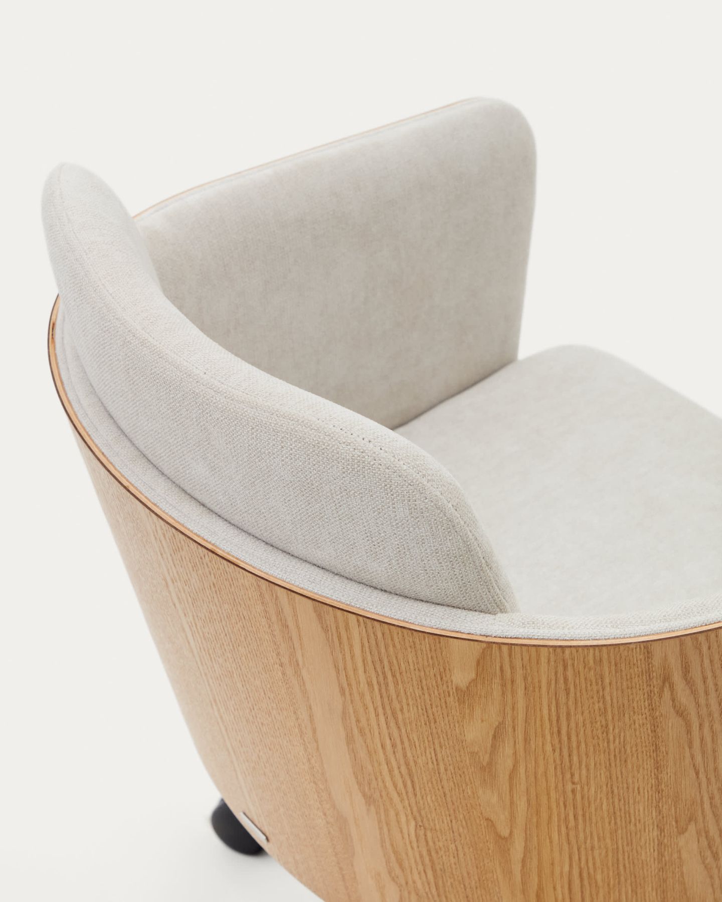 Дизайн, универсальность и комфорт — это Madai. Работайте над своими проектами с комфортом благодаря изогнутому дизайну, сочетающему в себе шпон ясеня, обивку из синели и черный алюминий.