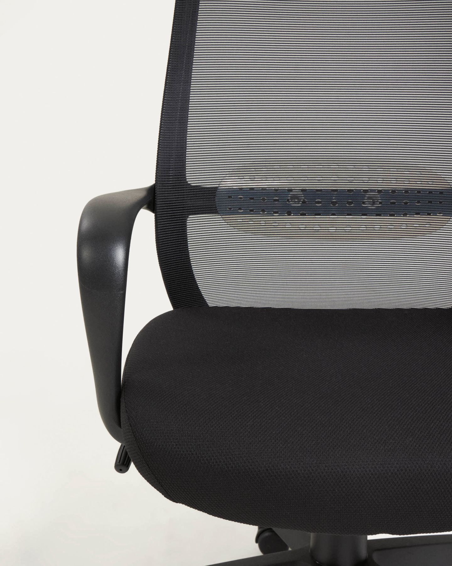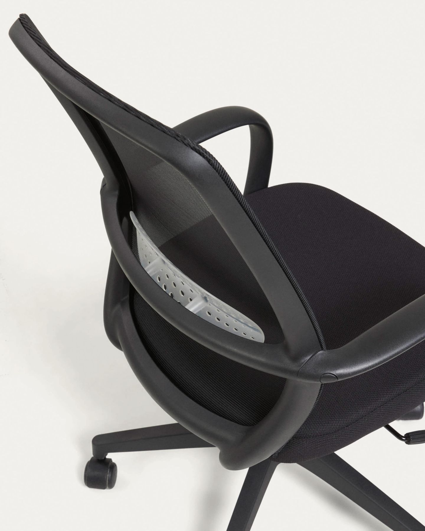 Офисное кресло Melva от фабрики La Forma (ex Julia Grup) – лаконичность и комфорт в современном дизайне. Офисное кресло Melva станет вашим верным союзником в реализации рабочих проектов дома. Эргономичная конструкция обеспечит удобное положение тела, ручка для регулировки высоты позволит подобрать оптимальную высоту сиденья, а колеса сделают кресло мобильным. Практичная обивка с защитой от пятен – еще одна особенность этой модели. Сосредоточьтесь на работе с комфортом! Кресло имеет сборную конструкцию, которая состоит из стойки и сиденья с сетчатой спинкой. Стойка изготовлена из металла, где верхняя часть имеет хромированное покрытие, а ножки окрашены матовой черной или белой порошковой краской (зависит от выбранной модели). Стойка оснащена газлифтом, который меняет высоту кресла в пределах 8 см. Колеса, установленные на ножках, имеют диаметр 5 см. Они вращаются на 360 градусов, при этом не царапают пол. Нижняя часть сиденья сделана из прочной фанеры, которая обита пеной плотностью 35 кг/м3 (средняя жесткость). Спинка и подлокотники изготовлены из полипропилена. Обивка на сиденье сделана из плотного текстиля черного или серого цвета (для модели с белой основой). Состав материала – 100% полиэстер. Максимальная весовая нагрузка на кресло – 130 кг. Размеры: ширина сиденья – 47 см, высота – от 95 до 103 см, глубина сиденья – 47 см. Вес изделия – 9,8 кг. Потребуется сборка.