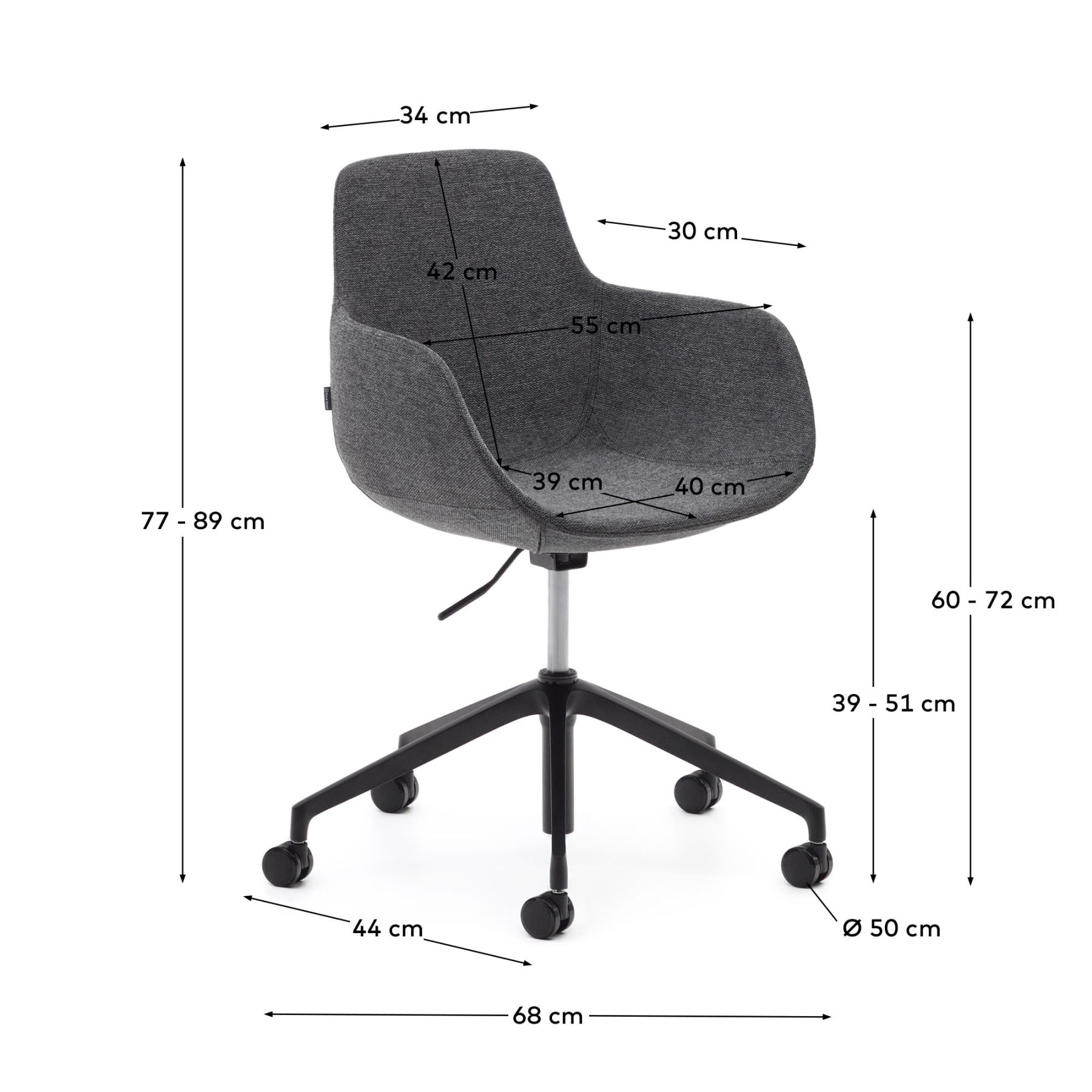 Дизайн, универсальность и комфорт — это Tissiana. Работайте над своими проектами с комфортом благодаря изогнутой конструкции с подлокотниками, поворотным сиденьем, колесами и регулируемой высотой. Выберите свой цвет и начните работать в комфорте.