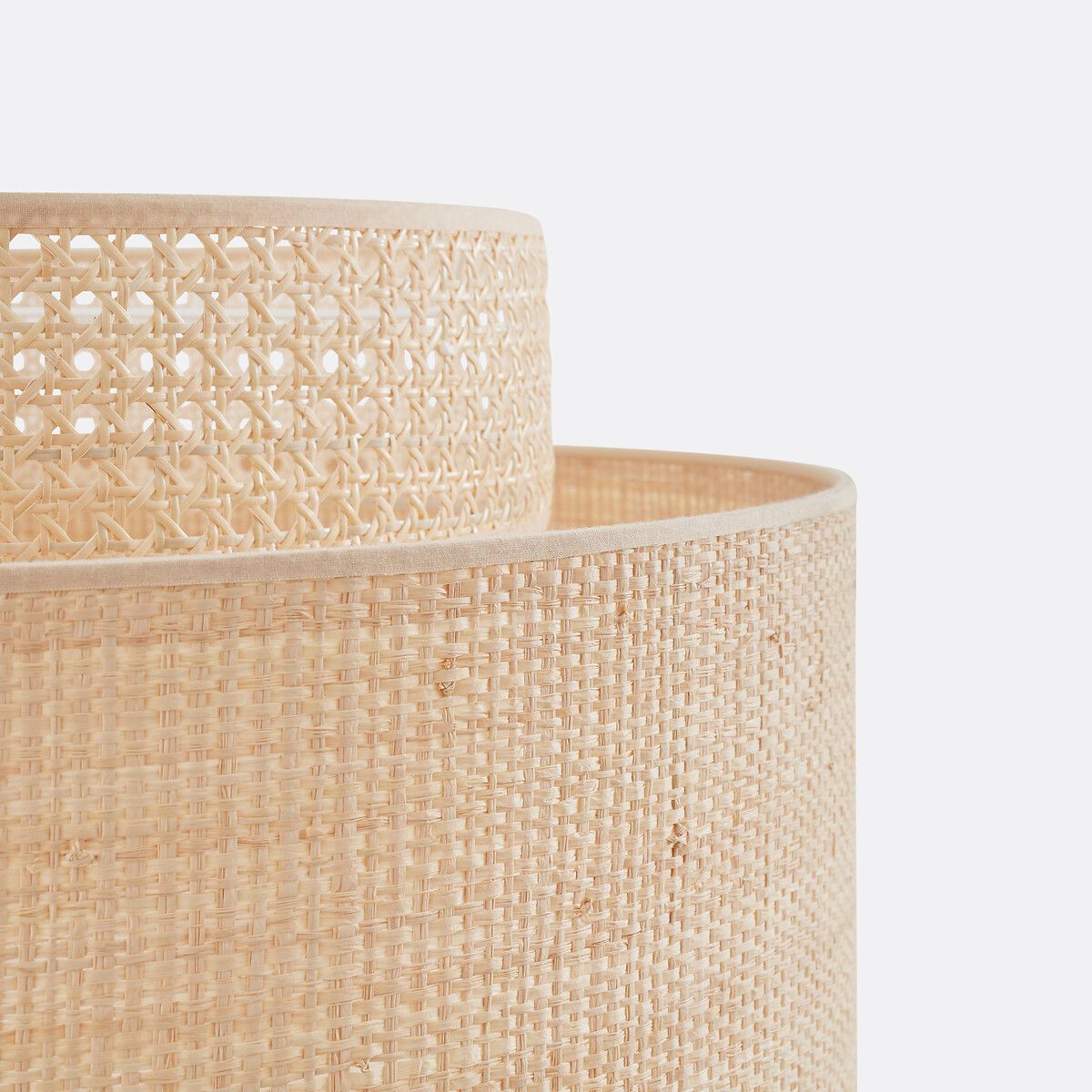 — Двойной абажур из рафии и плетеного ротанга с окантовкой из хлопка