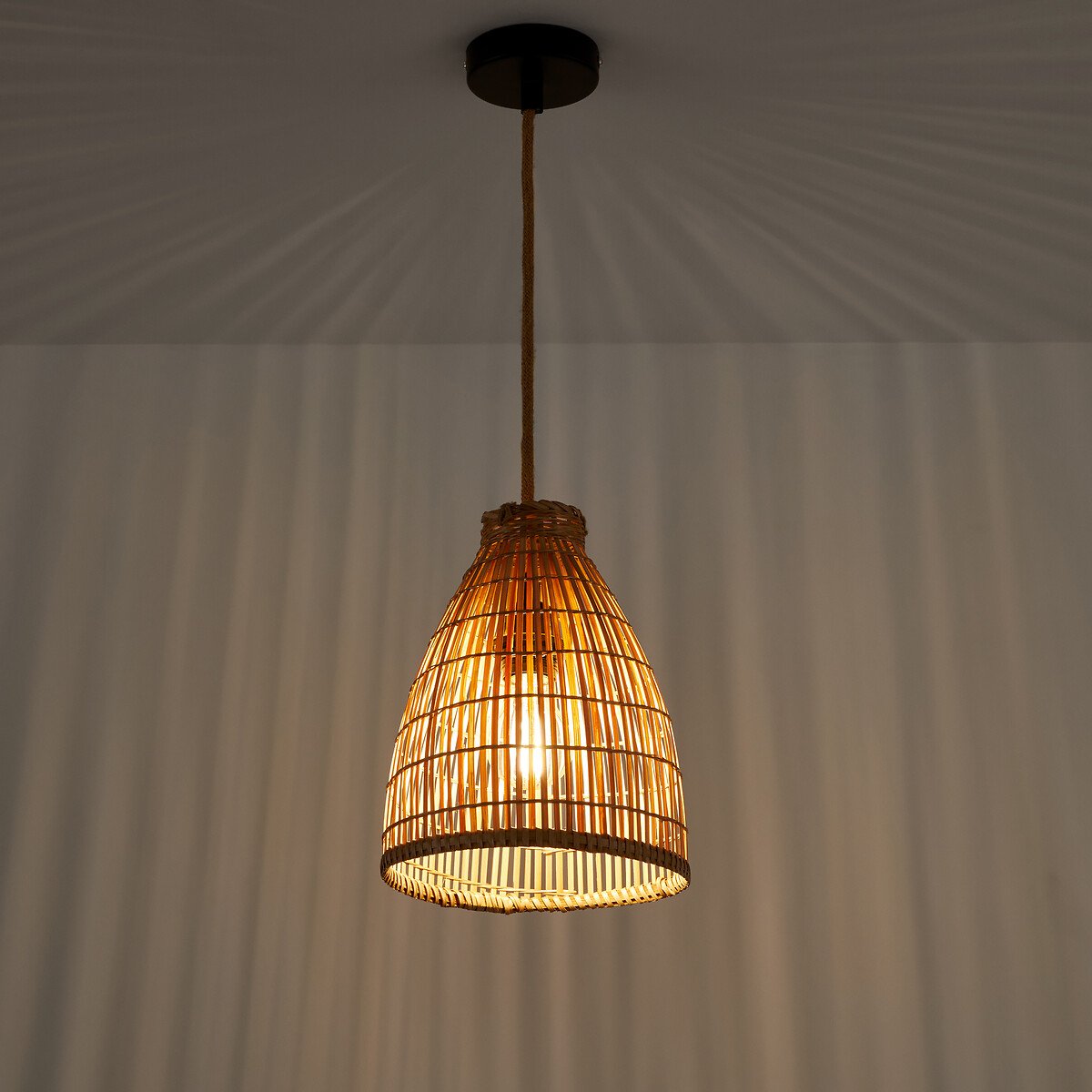 Этот абажур в стиле рыболовной верши создает теплый и приятный свет. Идеален для создания богемной атмосферы в любом интерьере.