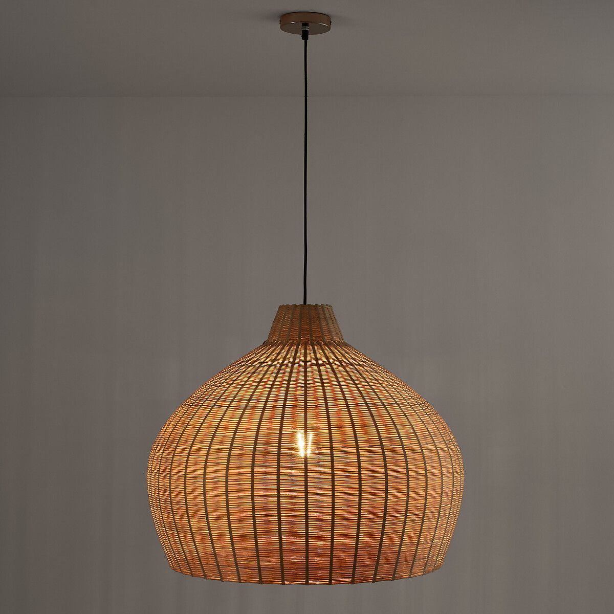 Плетеный бамбук идеально подчеркнут формой светильника. Прекрасное сочетание натурального материала и изгибов.