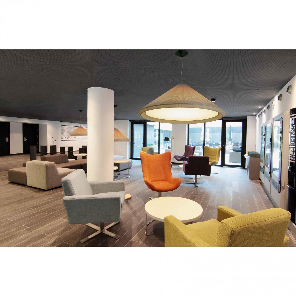 HUE IN - это подвесной светильник, доступный в различных цветах. Этот светильник имеет оригинальный абажур из лент, создающий оптическую иллюзию компактного абажура. HUE IN идеально подходит для домашнего освещения и гостиничных холлов.