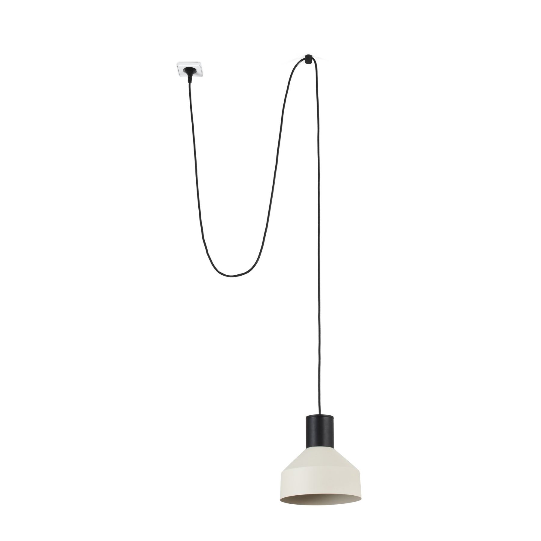 KOMBO — это семейство подвесных светильников, созданное Nutcreatives. Серия имеет разные размеры и отделку, которые имеют черную цилиндрическую структуру в верхней части. Абажур этого бежевого светильника выполнен из металла, выполнен в стиле минимализма и играет с геометрическими формами. Его диаметр составляет 20 см. Это подвесной вариант с вилкой и 5-метровым кабелем. Крючок входит в комплект.