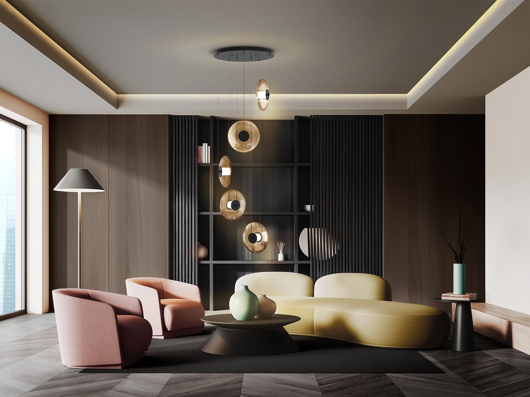 · Этот светильник оснащен системой GRAVITY TOGGLES для улучшения потолочного крепления. В светильнике используется светодиодный драйвер с симистором и регулировкой яркости 0–10 В, а также комплект диммера с диммером и радиочастотным пультом дистанционного управления. Регулировка яркости возможна с помощью симистора или настенного диммера 0–10 В.