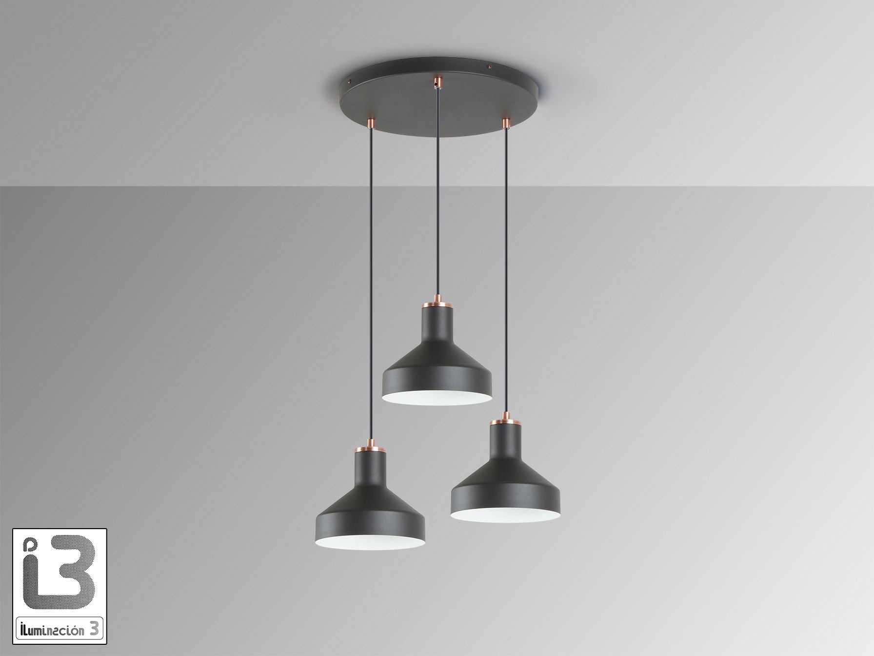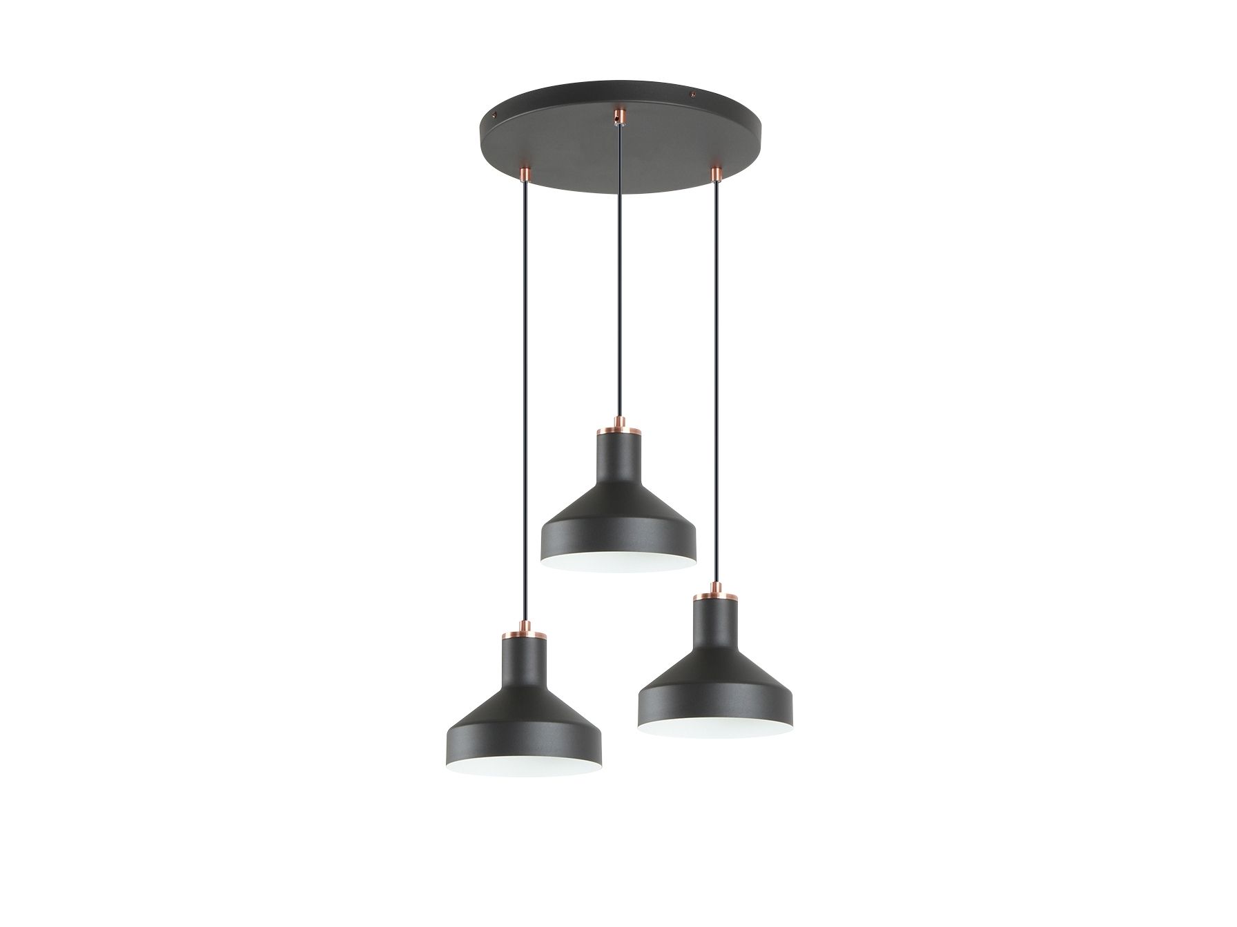 Круглая лампа на 3 лампы из металла, отделка матово-черная, детали из сатинированной меди. Регулируемая высота. 3 E27