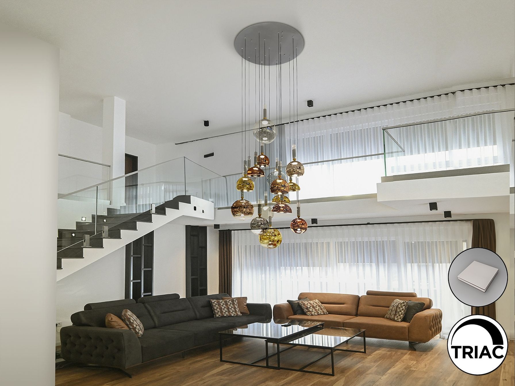 В этом изделии используется светодиодный драйвер с симистором и регулировкой яркости 0–10 В, в комплект входит набор диммера с диммером и радиочастотным пультом дистанционного управления, или его можно регулировать с помощью симистора или настенного диммера 0–10 В. · Эта лампа поставляется с ГРАВИТАЦИОННЫМИ ПЕРЕКЛЮЧАТЕЛЯМИ для улучшения крепления к потолку.