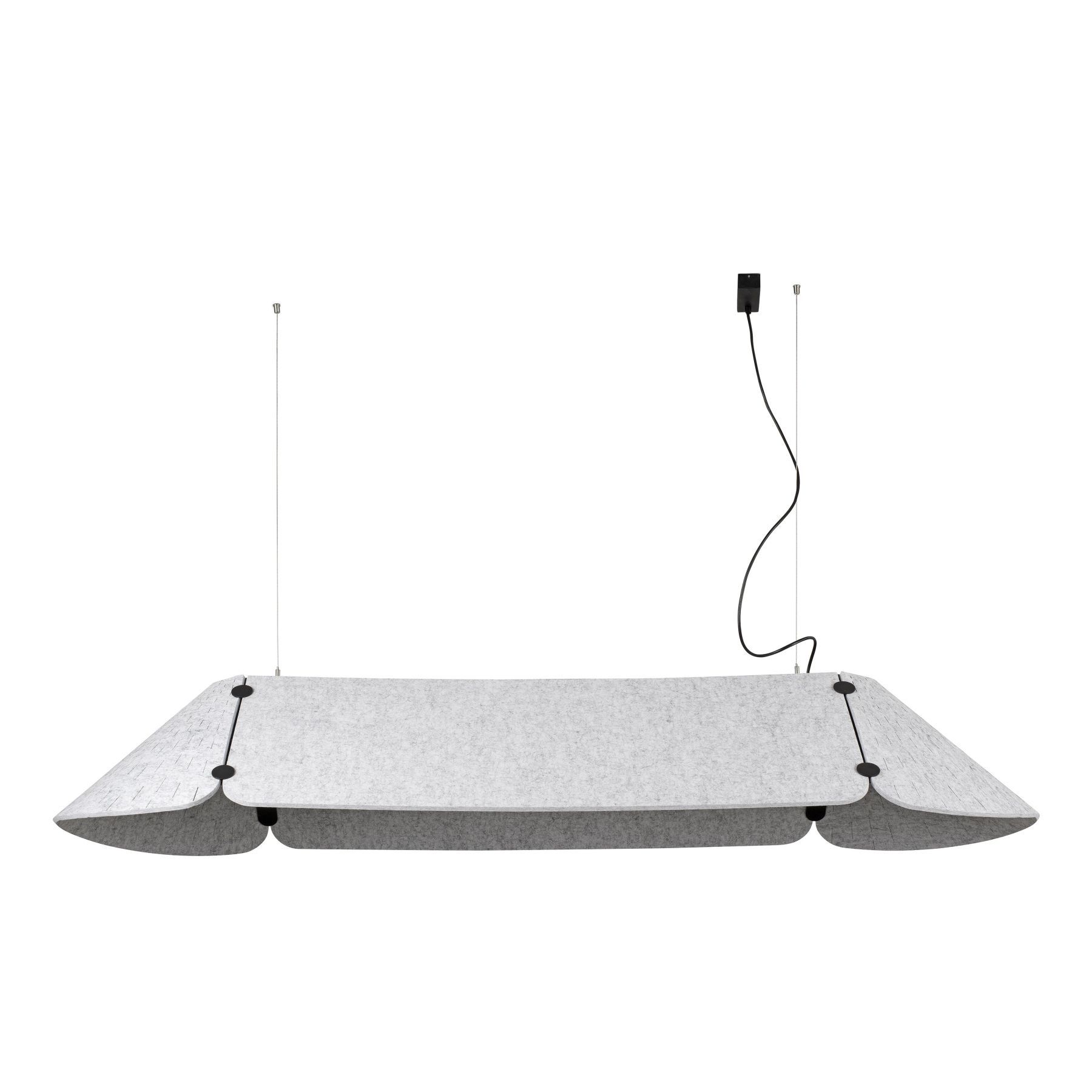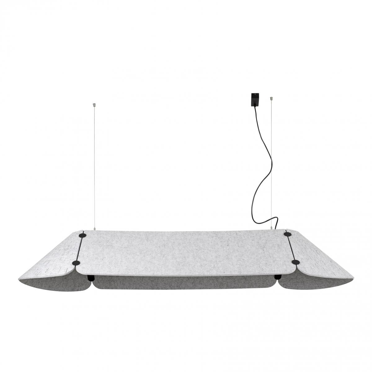 FONOVIA - это подвесной светильник из технической линейки, созданный для согрева рабочих пространств. Гибридный и модульный продукт, который, помимо освещения, работает как звукопоглощающая панель благодаря текстильным панелям. Идеальное дополнение для украшения и освещения офисов и открытых общих пространств. Источник света - LED SMD 25W 4000K.