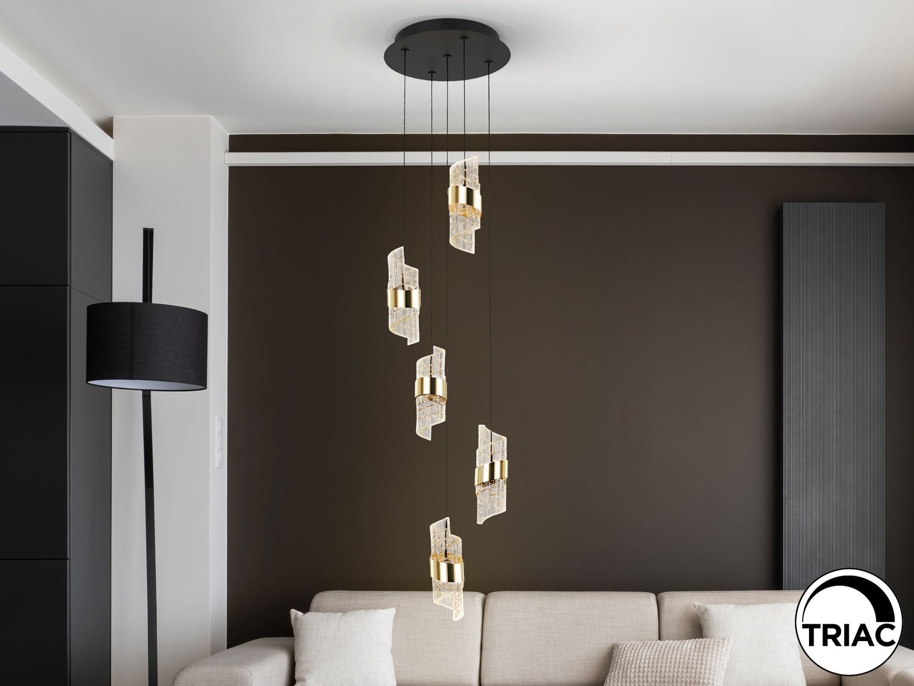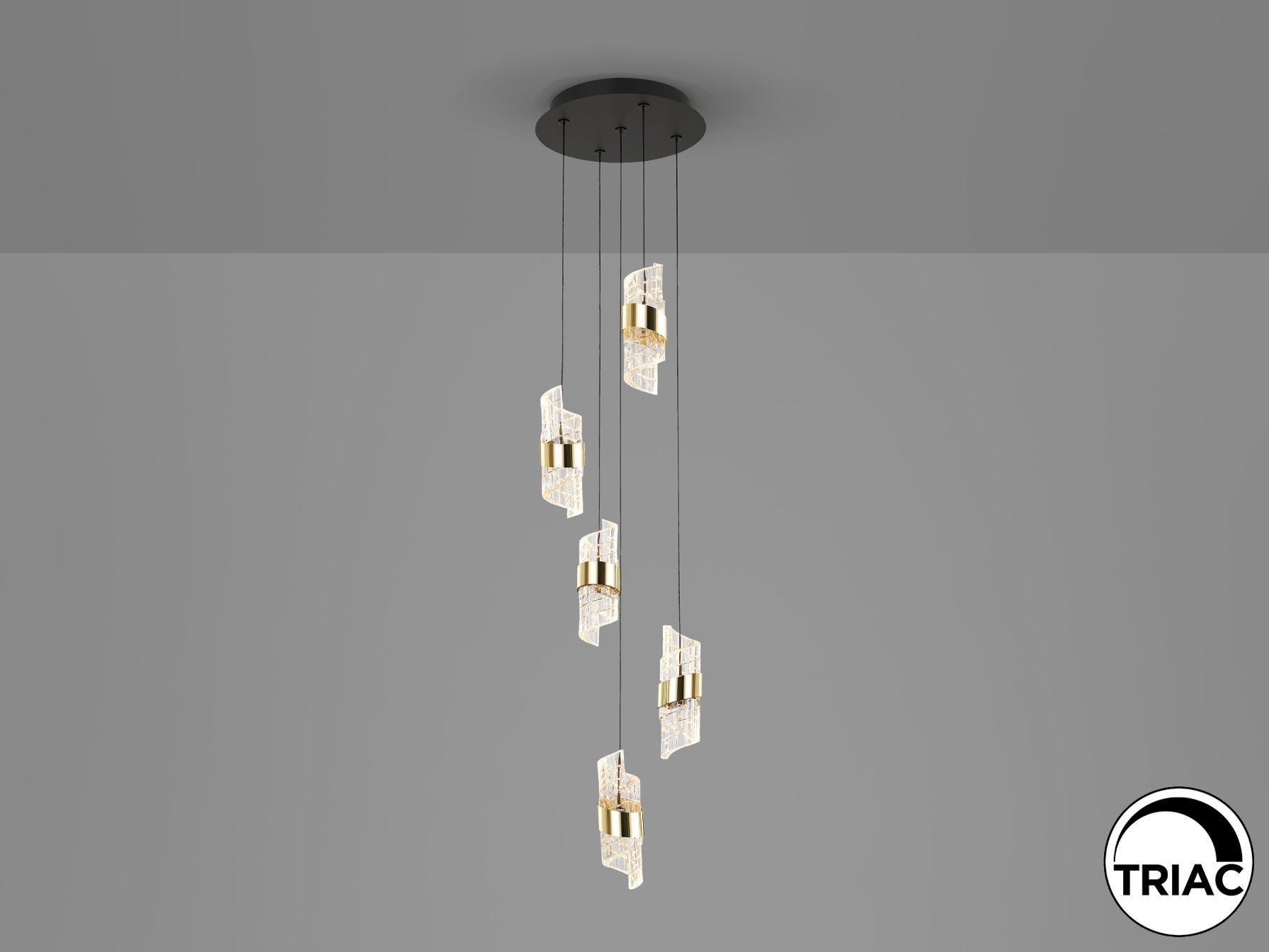 Лампа с 5 светодиодами. Изготовлена из металла с матово-черной и ярко-золотой отделкой. Абажуры со спиральным дизайном из формованного и резного акрила. Регулируемая высота. Светодиоды 35 Вт. 3220 лм. 3000 К. С РЕГУЛИРОВКОЙ ЯРКОСТИ