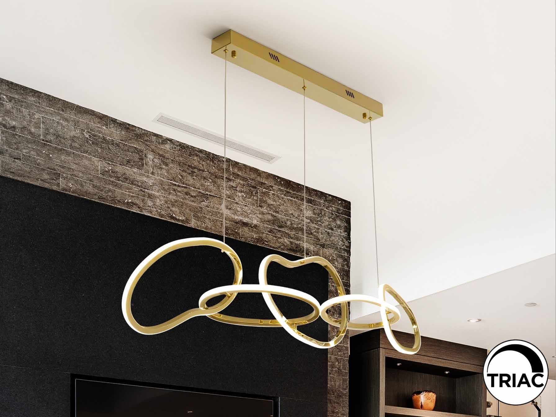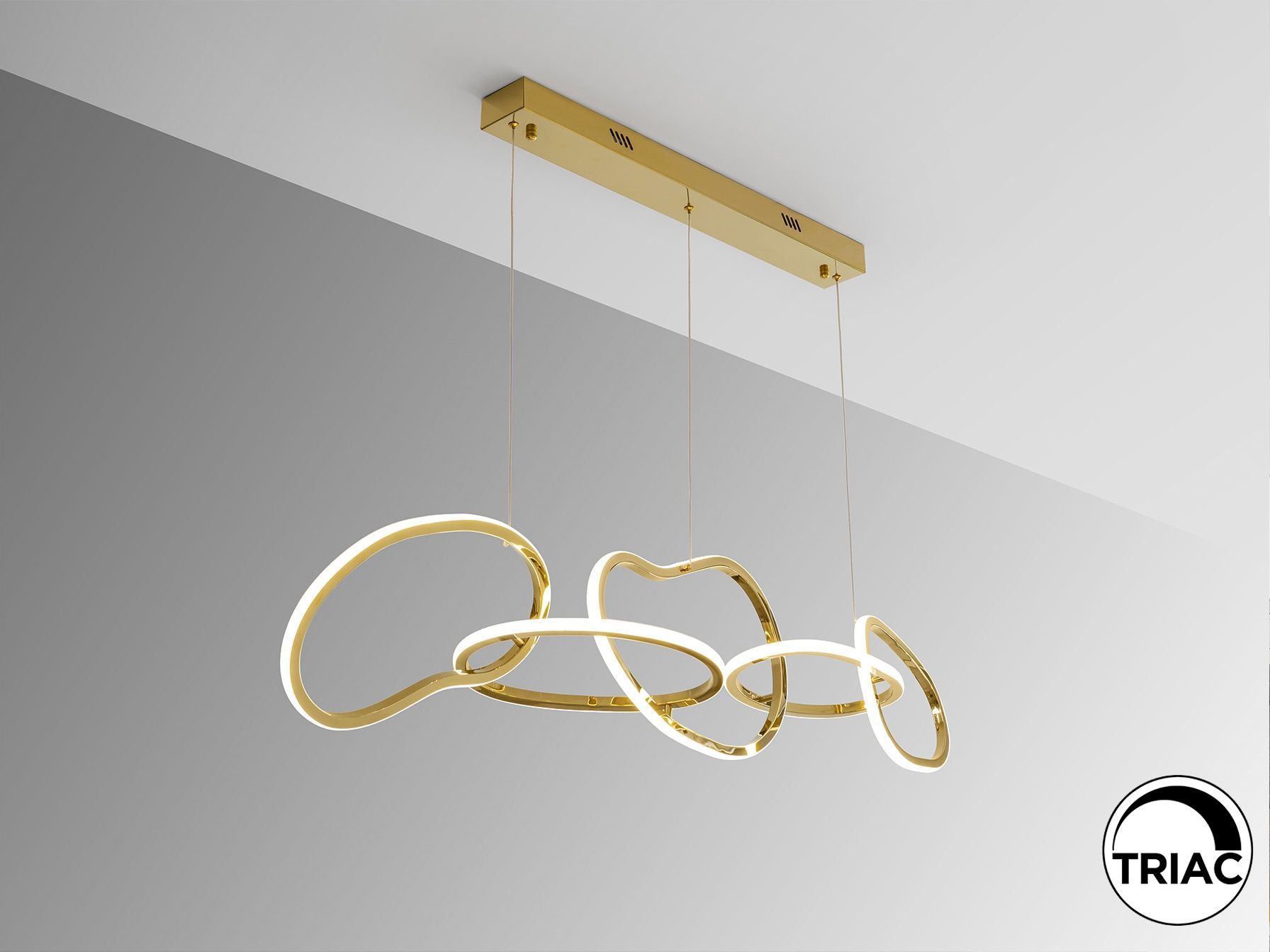 Светильник из нержавеющей стали с покрытием из яркого золота. Рассеиватель из опалового силикона. Регулируемая высота. Светодиод 75 Вт, 7100 лм, 3000 К. РЕГУЛИРУЕМАЯ ЯРКОСТЬ