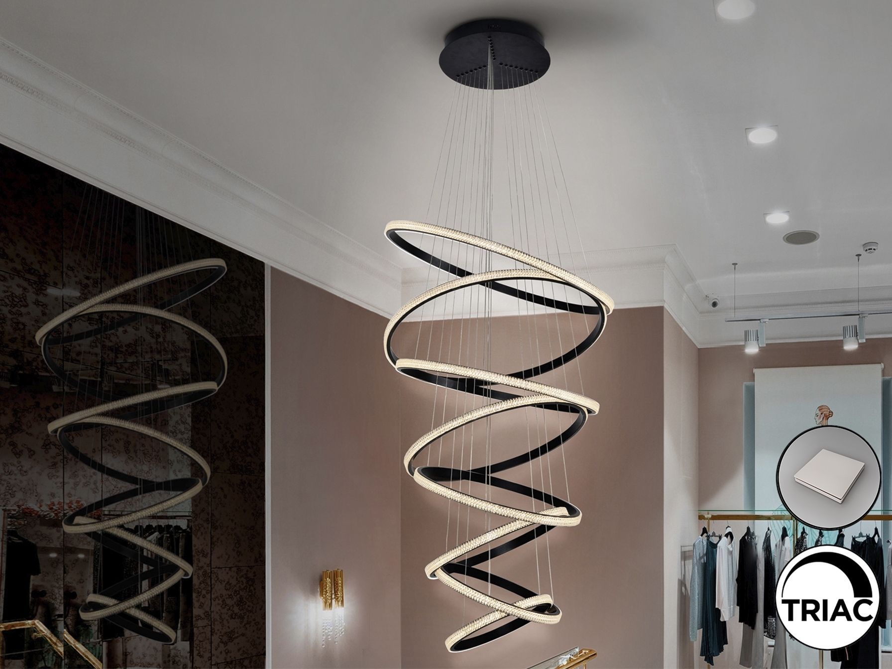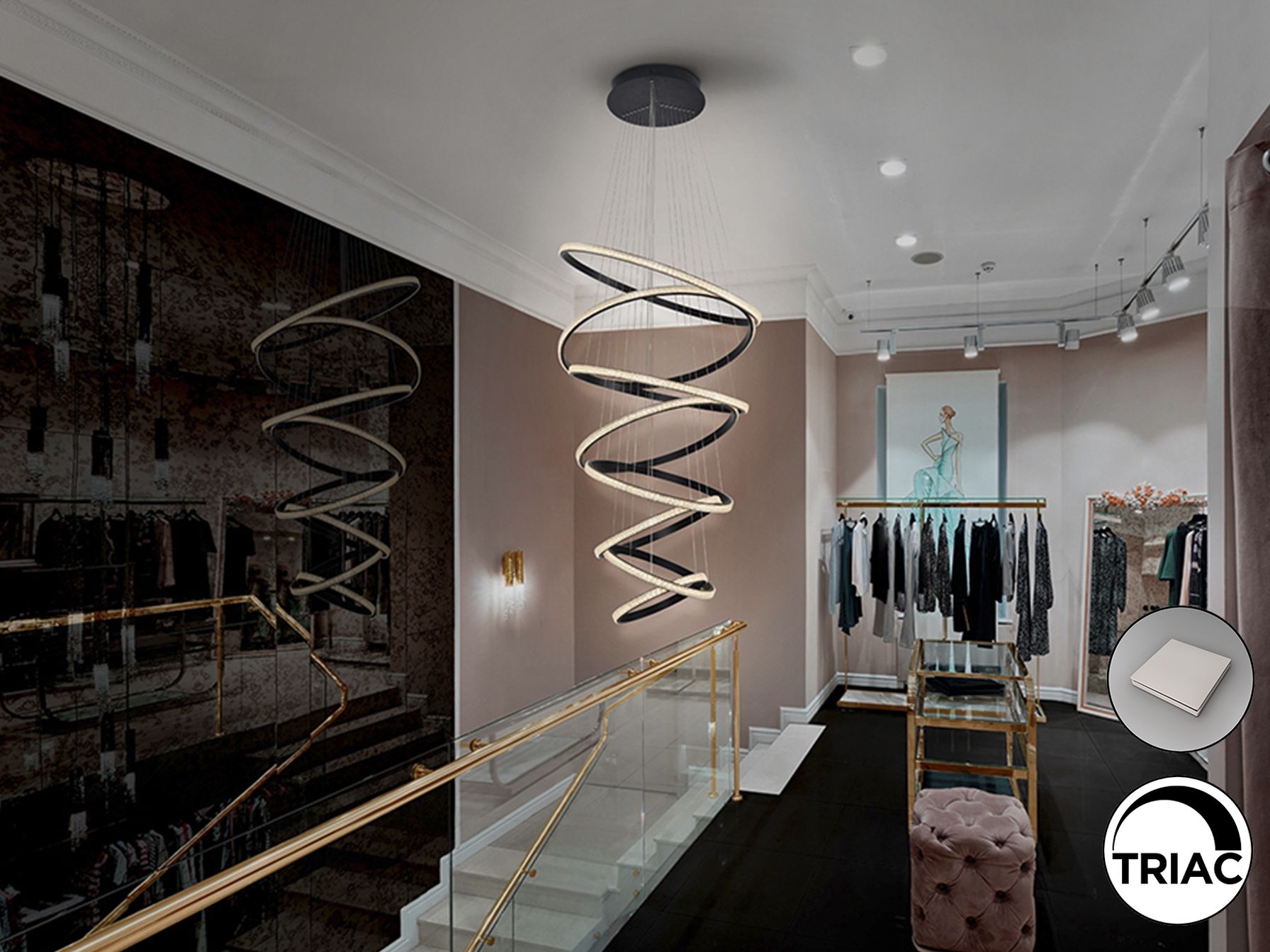 Этот продукт включает в себя светодиодные драйверы с триаком и регулировкой яркости 0–10 В. В комплект входит комплект затемнения с приемником и радиочастотным пультом дистанционного управления. Его также можно использовать с симисторным или настенным диммером 0–10 В. · Эта лампа поставляется с ГРАВИТАЦИОННЫМИ ПЕРЕКЛЮЧАТЕЛЯМИ для улучшения крепления к потолку.
