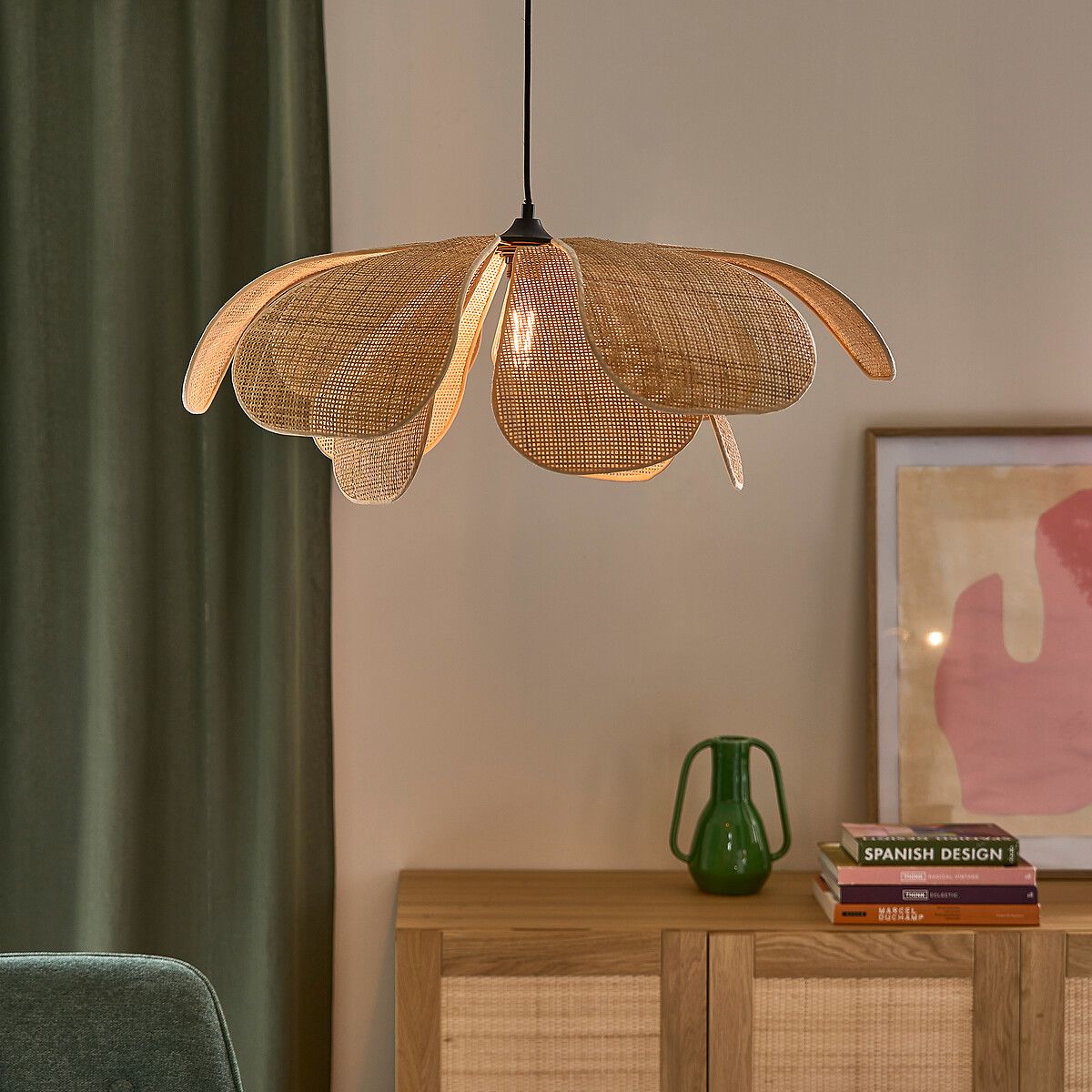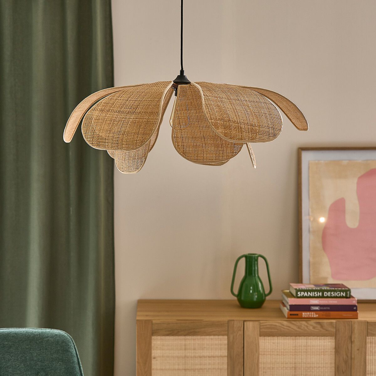 В люстре Lola дизайнеры бренда La Redoute Interiors по-новому интерпретировали легендарную люстру 70-х годов в виде лепестков. Натуральный ротанг и органическая форма играют на контрасте, создавая роскошное изделие. Сам по себе украшает интерьер.