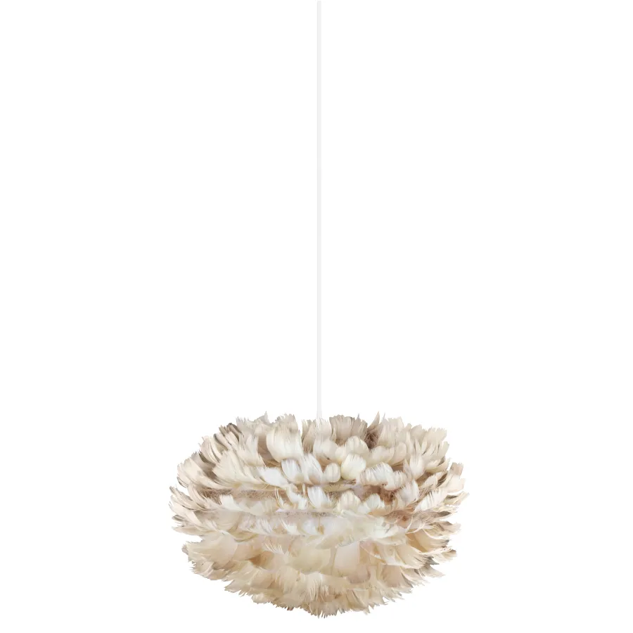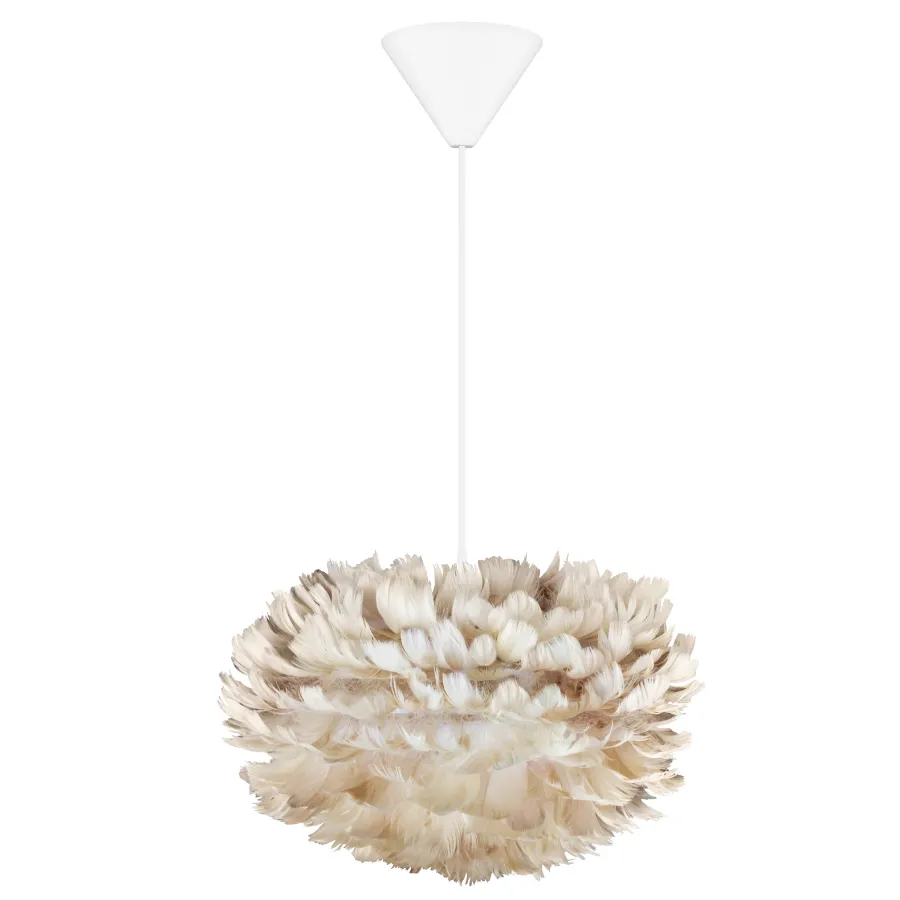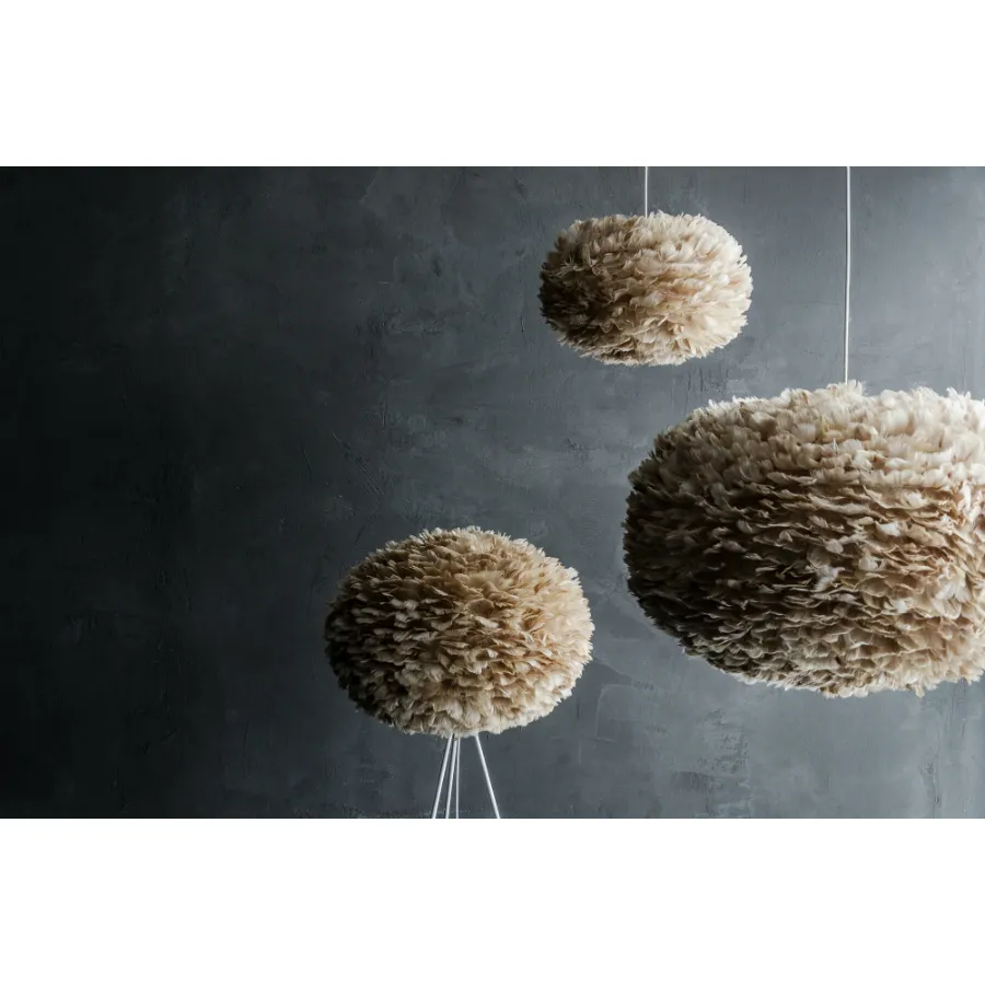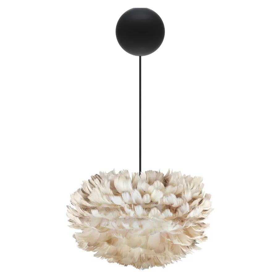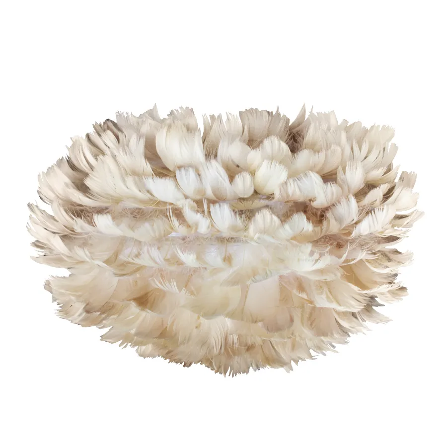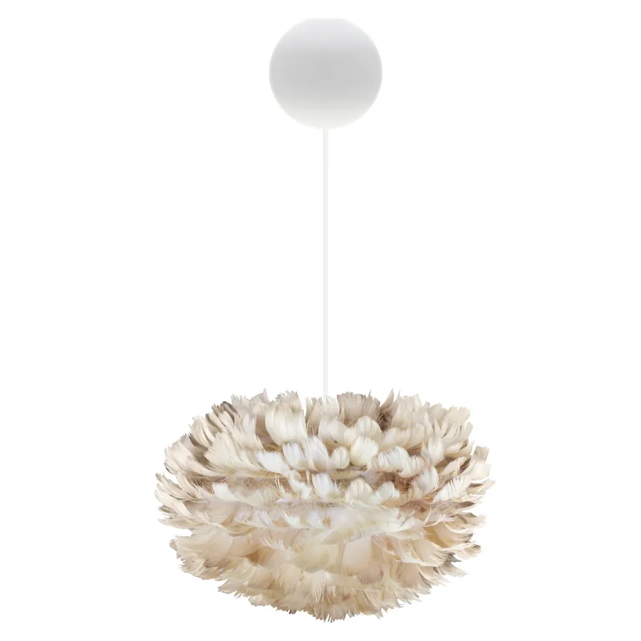Umage Eos – уникальный плафон, выполненный из натуральных гусиных перьев. Благодаря этому он создает мягкий и теплый свет в помещении, а также добавляет изысканный и элегантный акцент в любой интерьер. Нейтральная и гармоничная цветовая палитра, создающая теплую и гостеприимную атмосферу, - вот квинтэссенция семьи Umage Eos! Возможна установка на подвесе (приобретается отдельно). Шнур и источник света в комплект не входят. Источник освещения (в комплект не входит): Max 15W LED, цоколь E27/E26. Рекомендуется источник света с холодной цветностью (4000К и выше).