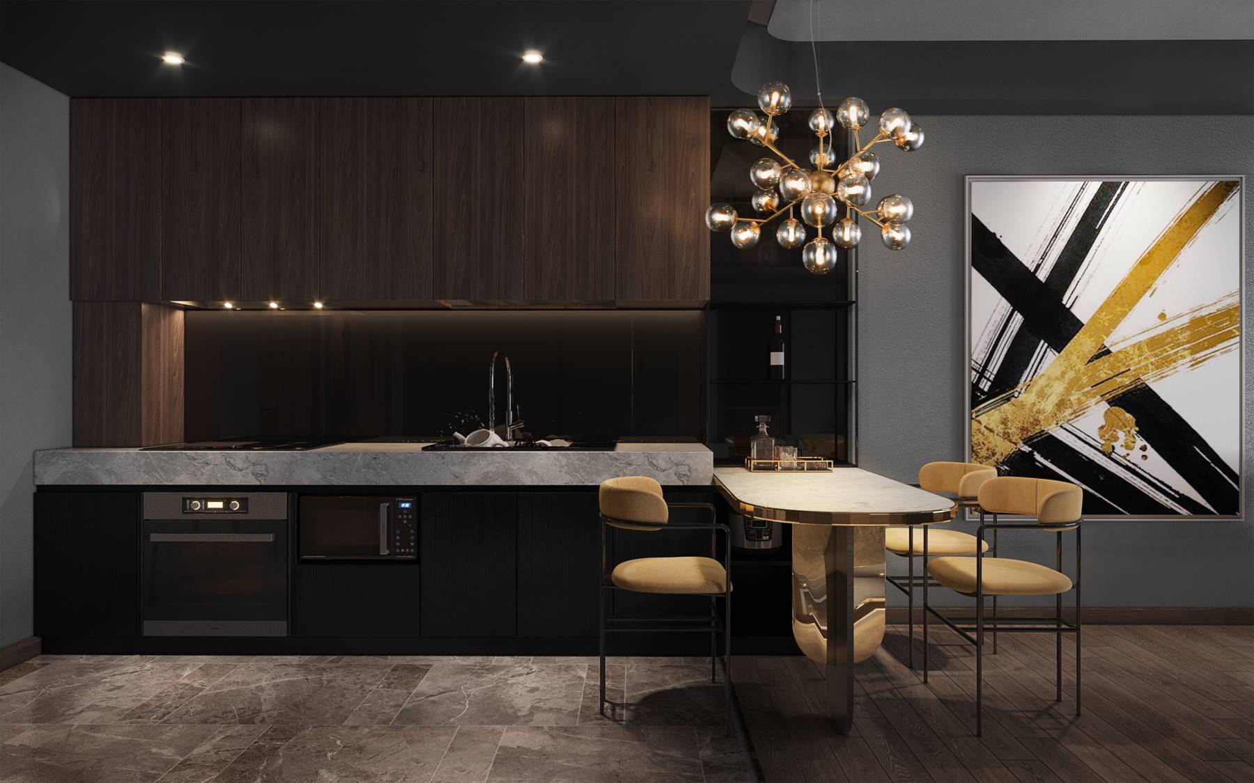 Металлическая арматура в четырех цветах: матовый черный, хром, золото, латунь. Плафоны — выдувное стекло. Цвета — дымчатый, янтарный, коньячный. Дизайн с имитацией молекулярной структуры. Высота подвесных светильников регулируется тросом. Лампа с цоколем G9.
