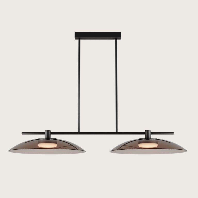 Люстра с плафоном из стекла и металлическим основанием в золотой или черной отделке.