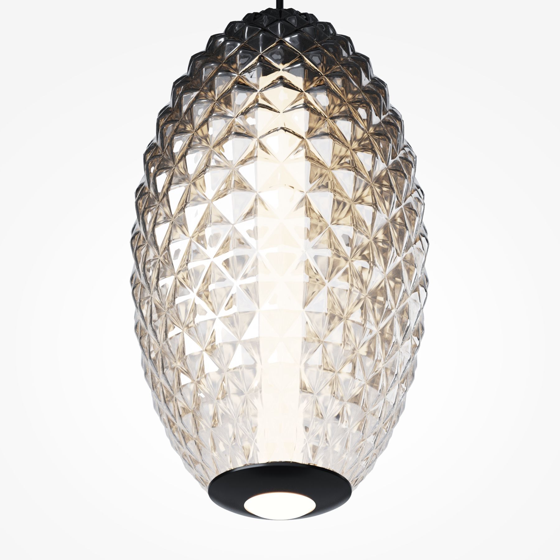 Подвесные светильники серии Bruma представлены в двух дизайнах: арматура глянцевый хром с белым стеклянным плафоном с нанесённым изнутри рельефом; черная арматура с антибликовым покрытием и черный плафон с наружным рельефом. Градиент на стекле от белого или черного к прозрачному. LED-источник света (3000K) имеет два направления: рассеянный и направленный. Подвесные светильники Bruma дополнят большинство современных интерьеров как в качестве одиночного акцента, так и в композиции друг с другом.