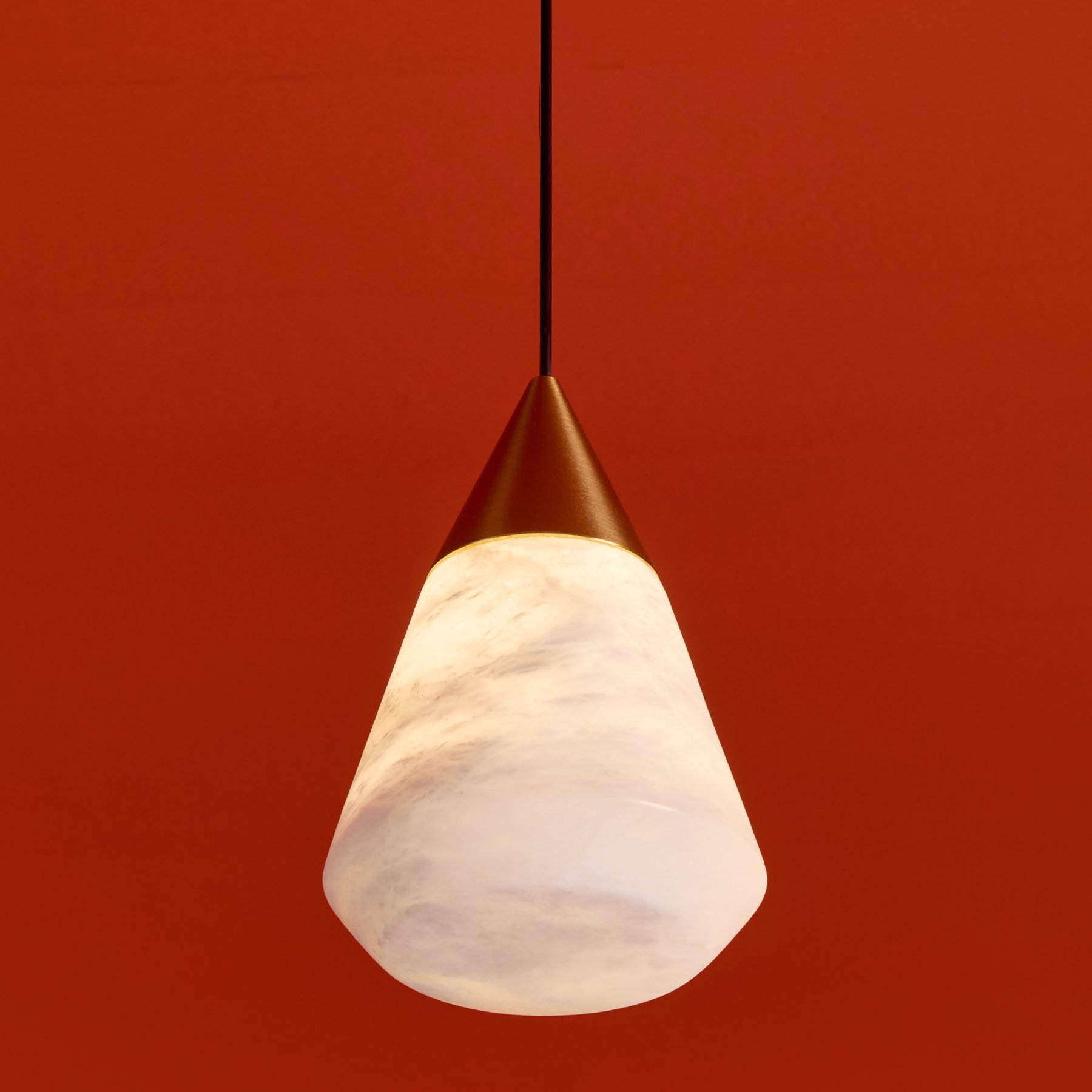 Арматура — металл. Плафоны из алебастра/камня и матового белого стекла. Версии с лампами G9 (не в комплекте) и с LED источником света. Высота регулируется.