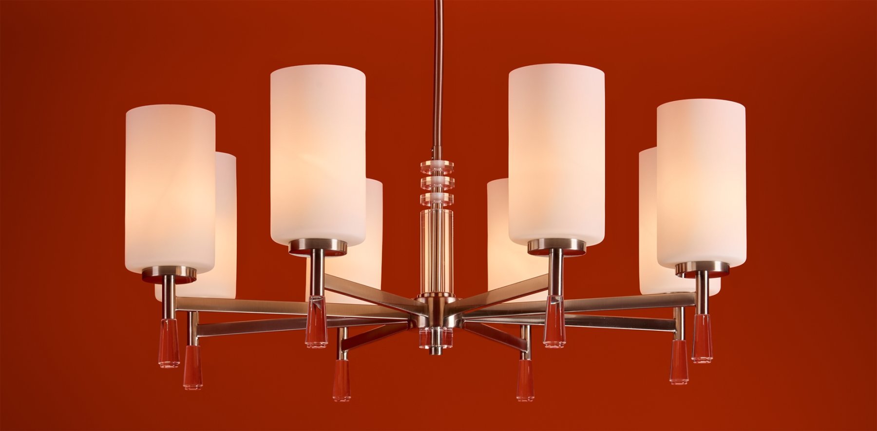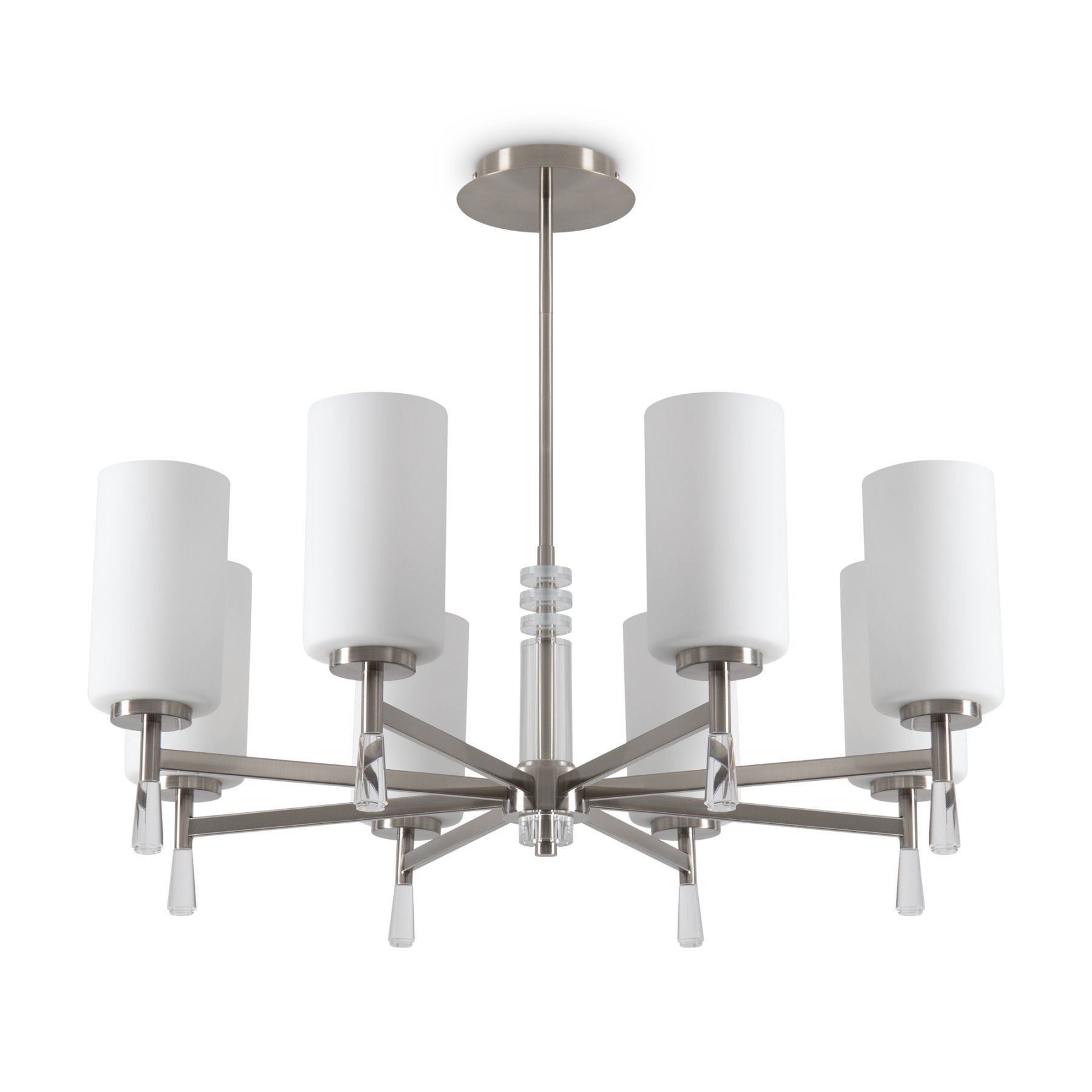 Металлическая арматура: латунь или никель (новинка серии).Белые стеклянные плафоны цилиндрической формы, направленные вверх.. Хрустальное основание с акриловыми каплями. Лампа E27.