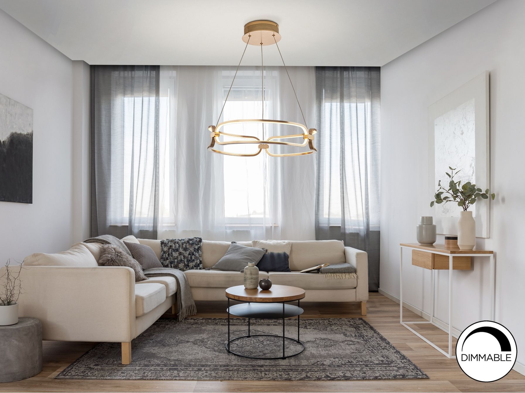 Подвесной светильник LED маленького размера, из алюминия с матовым полированным золотистым покрытием. Силиконовые рассеиватели опалового цвета. С регулируемой высотой, 37W LED, 3330 Lm, 3000 K.