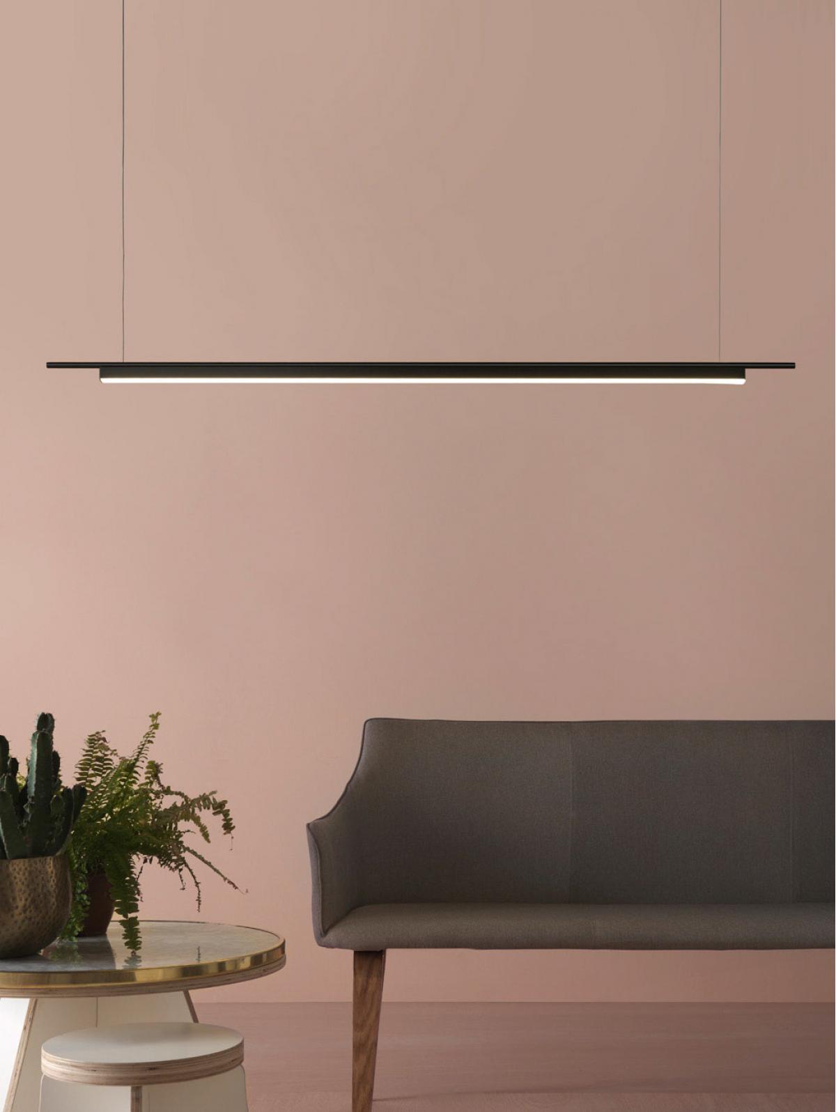 Потолочный светильник с минималистским дизайном и индустриальным вдохновением, со стальной конструкцией с матовой черной отделкой и белым акриловым диффузором. Со светодиодной лентой 15Вт, 300к, 1350л.