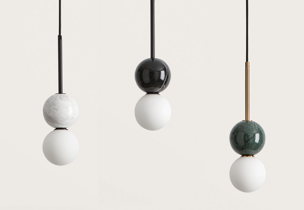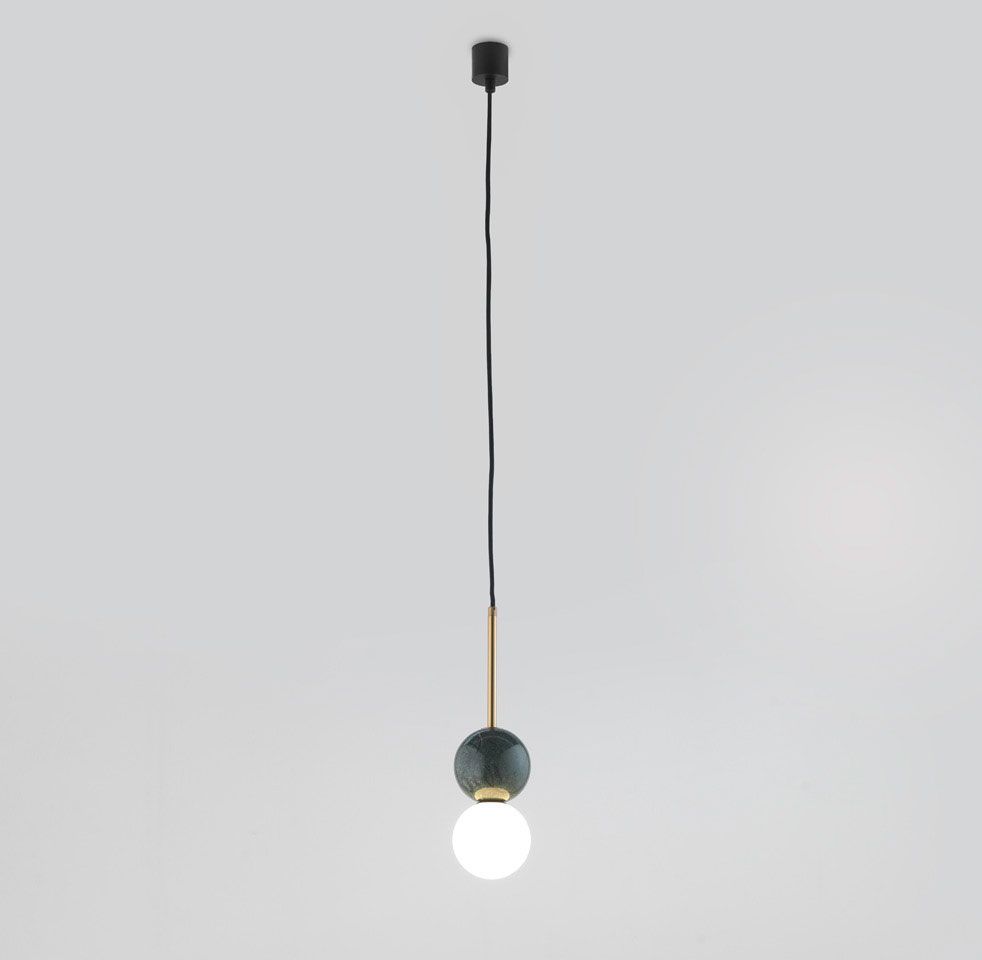 Подвесной светильник со структурой из состаренного золота или черной матовой стали, абажур из шариков из мрамора и опалового стекла со светодиодной подсветкой. Включает светодиодную лампу G9 5W 3000K.