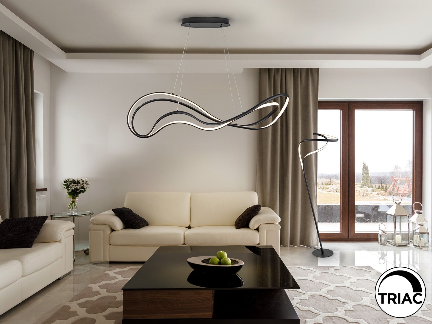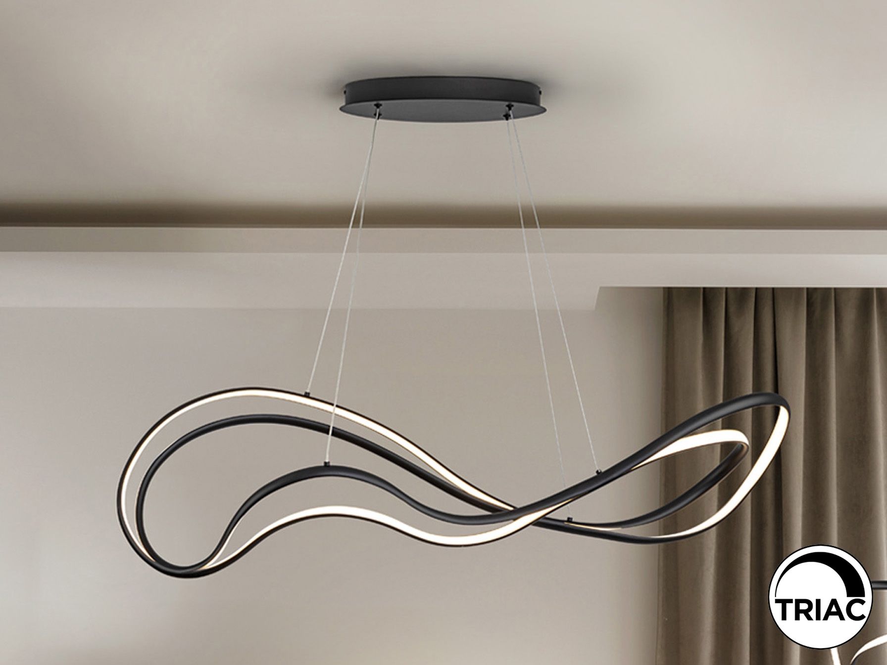 Светильник из металла и алюминия с матово-черной пескоструйной обработкой. Рассеиватель из опалового силикона. Светодиоды мощностью 75 Вт. 3064 лм. 3000 К. РЕГУЛИРУЕМАЯ ЯРКОСТЬ