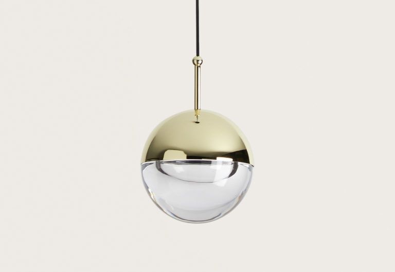 Потолочная люстра на длинном подвесе, изготовленная из стали и оптического стекла в черно-золотом цвете.