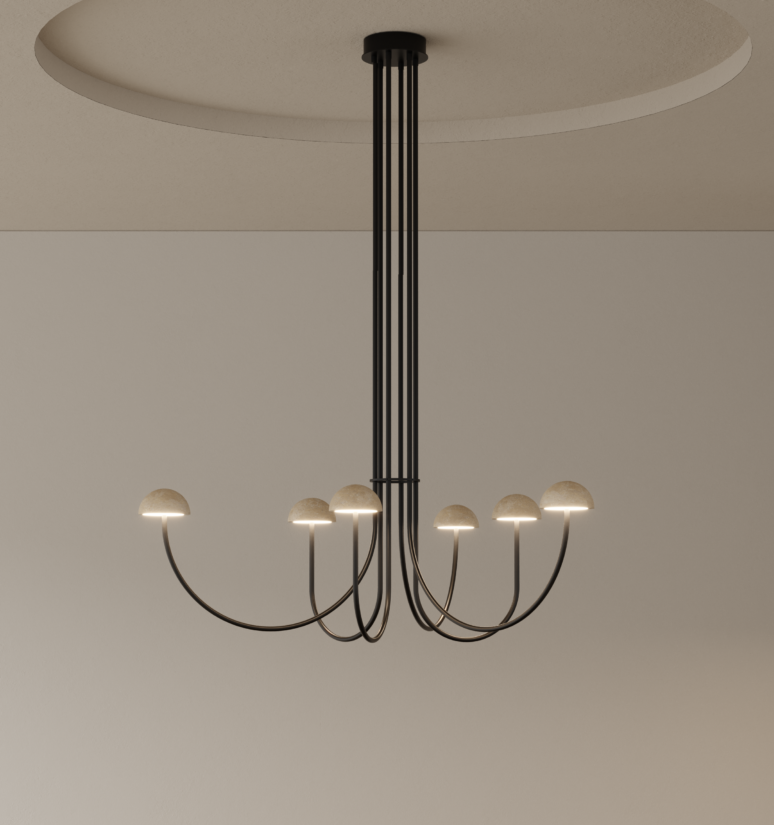 Подвесной светильник с мраморными абажурами и металлическим основанием.