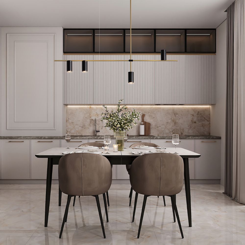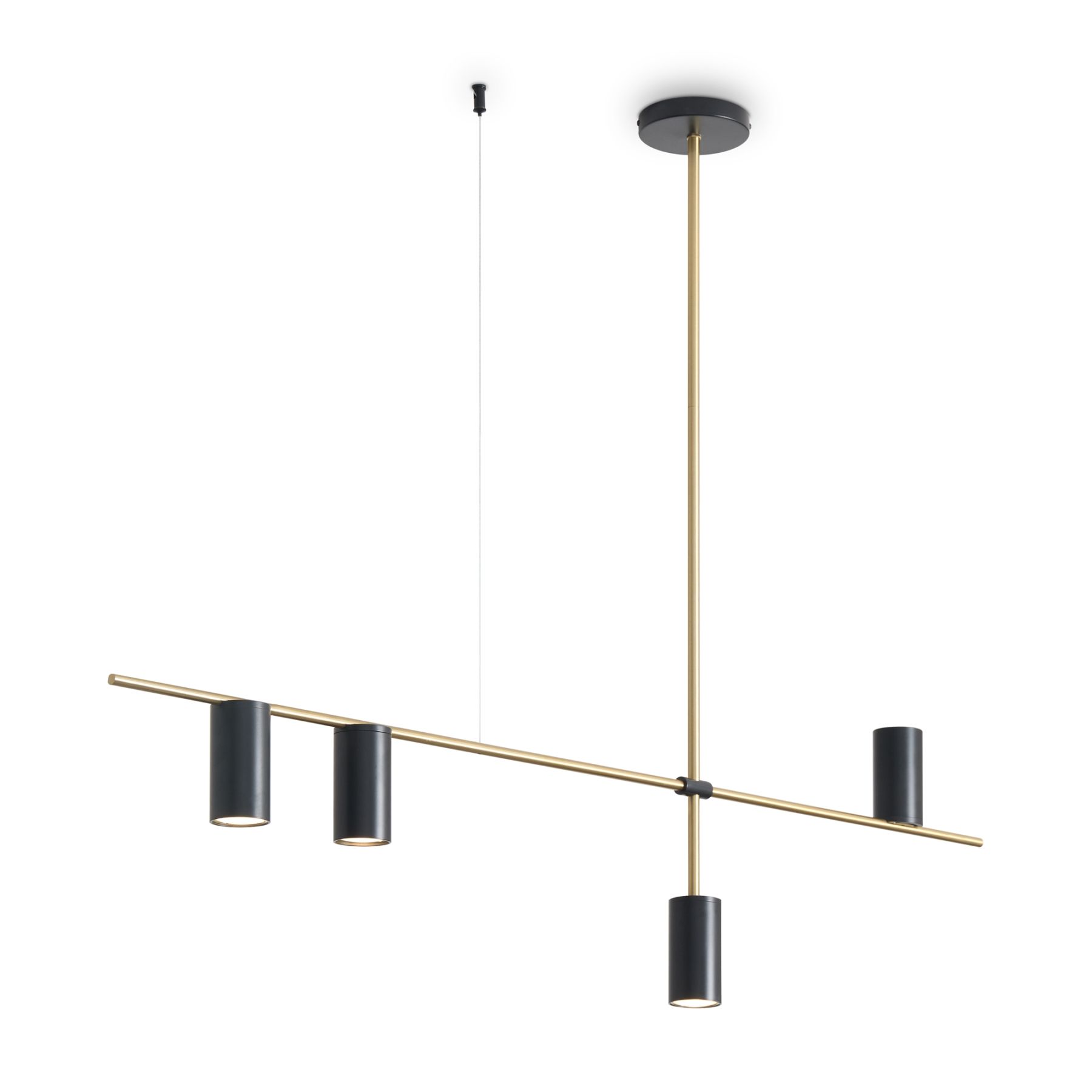 Арматура и плафоны из металла. Черный цвет дополнен латунной окантовкой. Поворотные плафоны и арматура позволяют видоизменять композицию и регулировать направление светового потока. Источник света – лампа GU10.