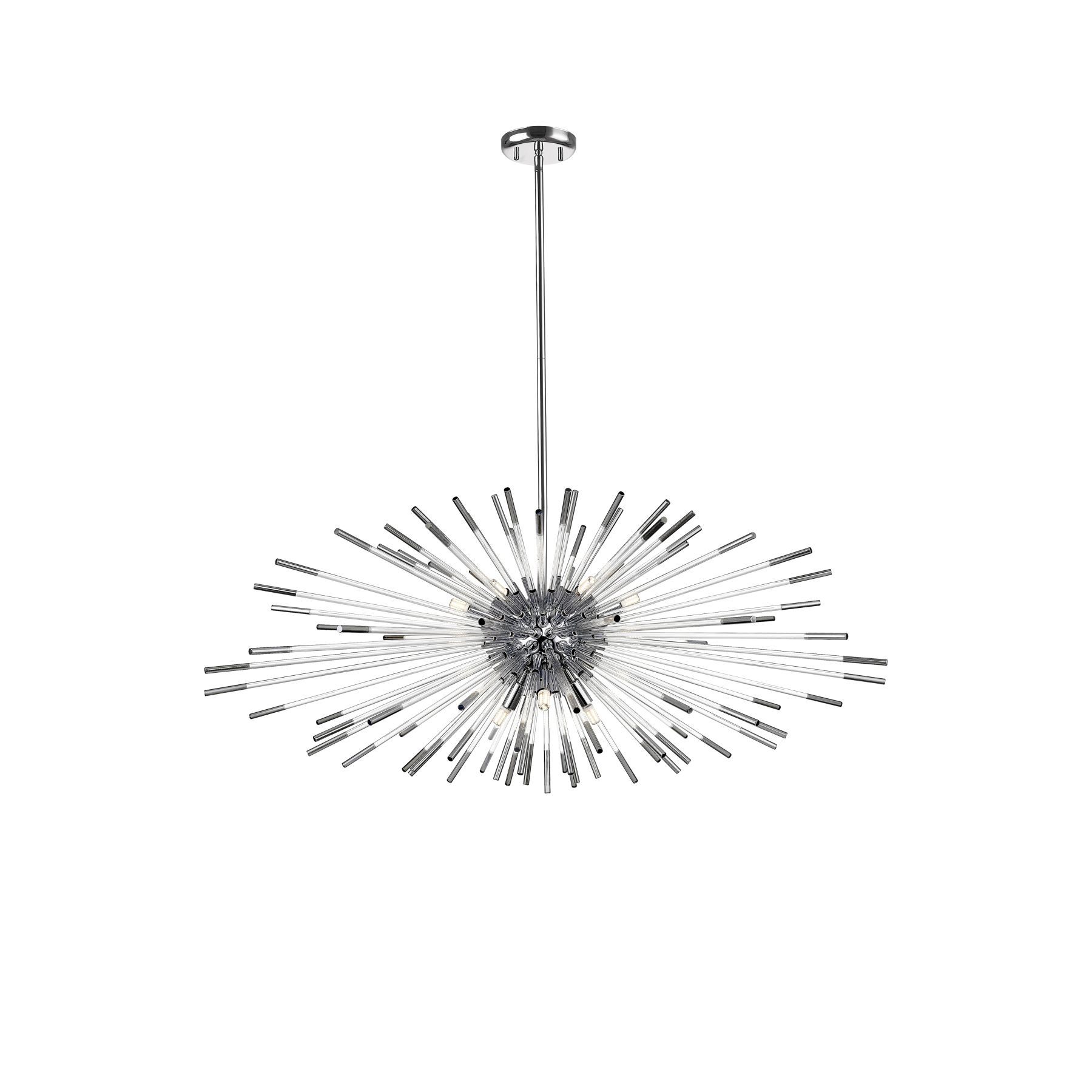 Подвесной шарообразный светильник из хромированного металла. Стержни из прозрачного стекла с покрытием "тёмный хром" на концах, с регулируемой высотой.