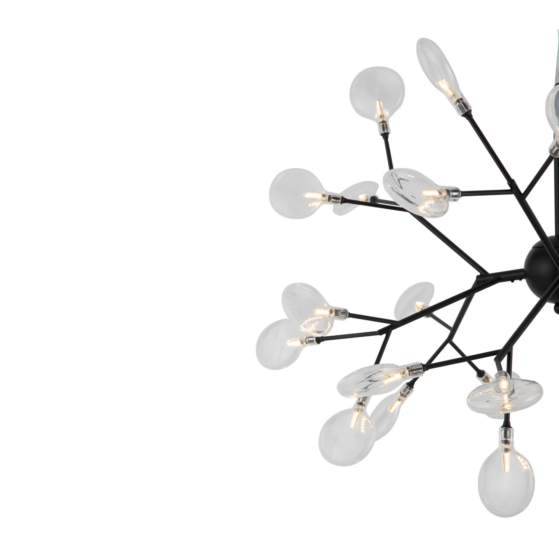 Материал арматуры – металл. Оттенки – черный, белый. Стеклянные плафоны оригинальной формы. Трендовый флористический дизайн. Источник света – лампа G4.