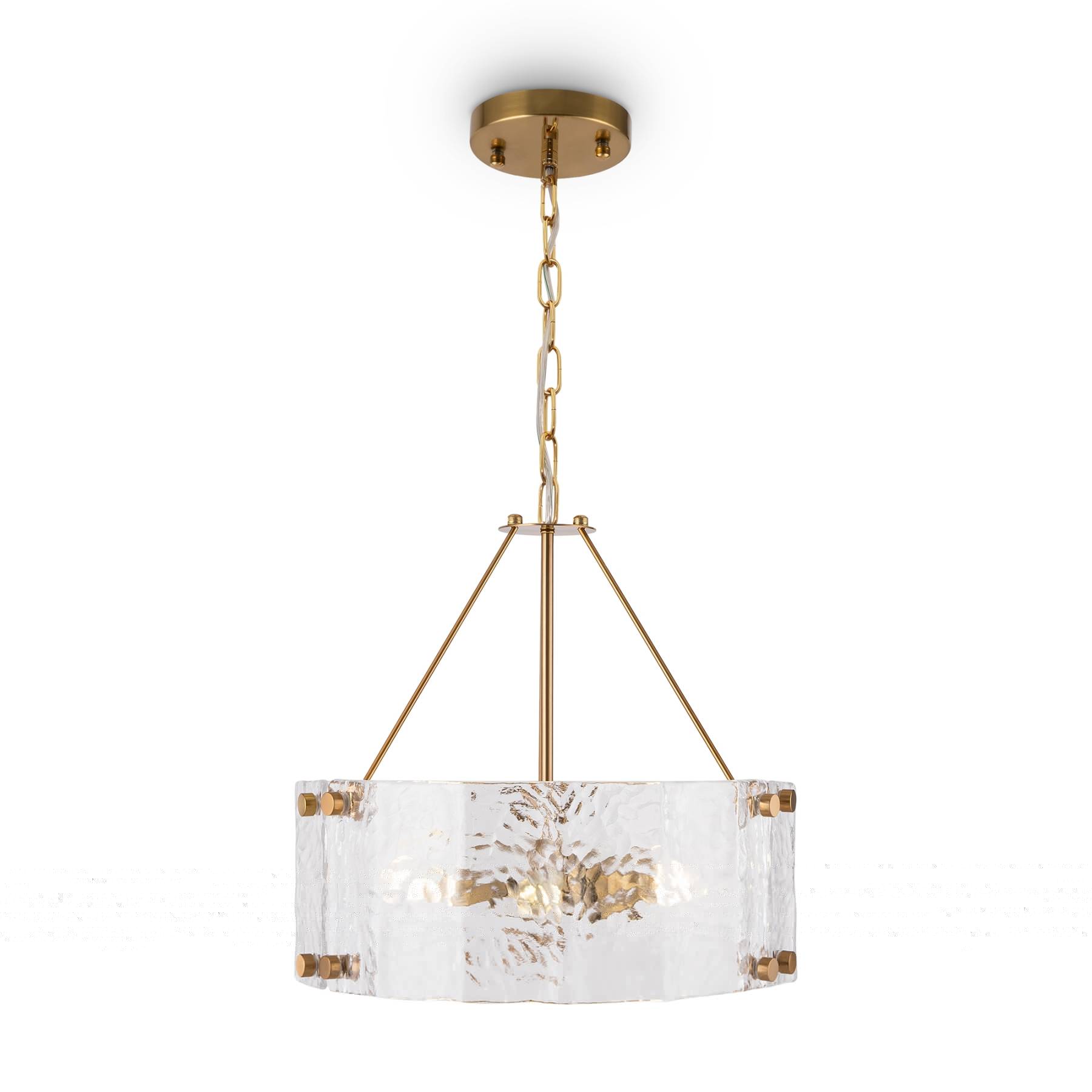 Металлическая арматура оттенка латуни. Декор – литое рельефное стекло. В качестве источников света используются лампы с цоколем Е14.
