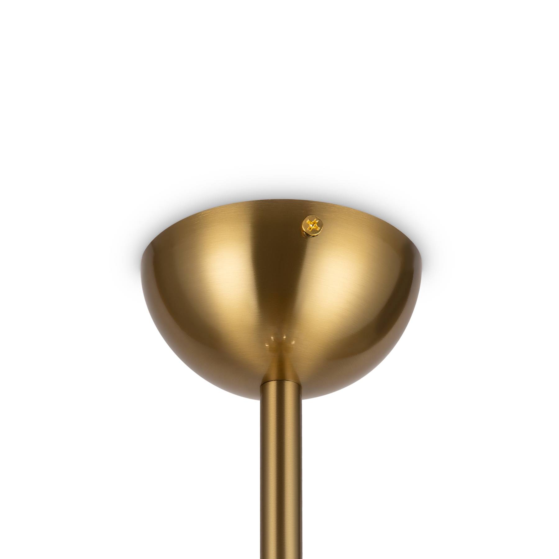 Арматура - металл, оттенки - хром и латунь. Плафоны-сферы из белого матового стекла. Подвесы двух видов: с регулируемой высотой на 7, 13, 19 ламп с цоколем E27 - помещены внутри плафонов на прозрачных проводах, и с фиксированной высотой на 6 ламп с цоколем Е14 - незаметно расположены над декоративным "облаком" плафонов.