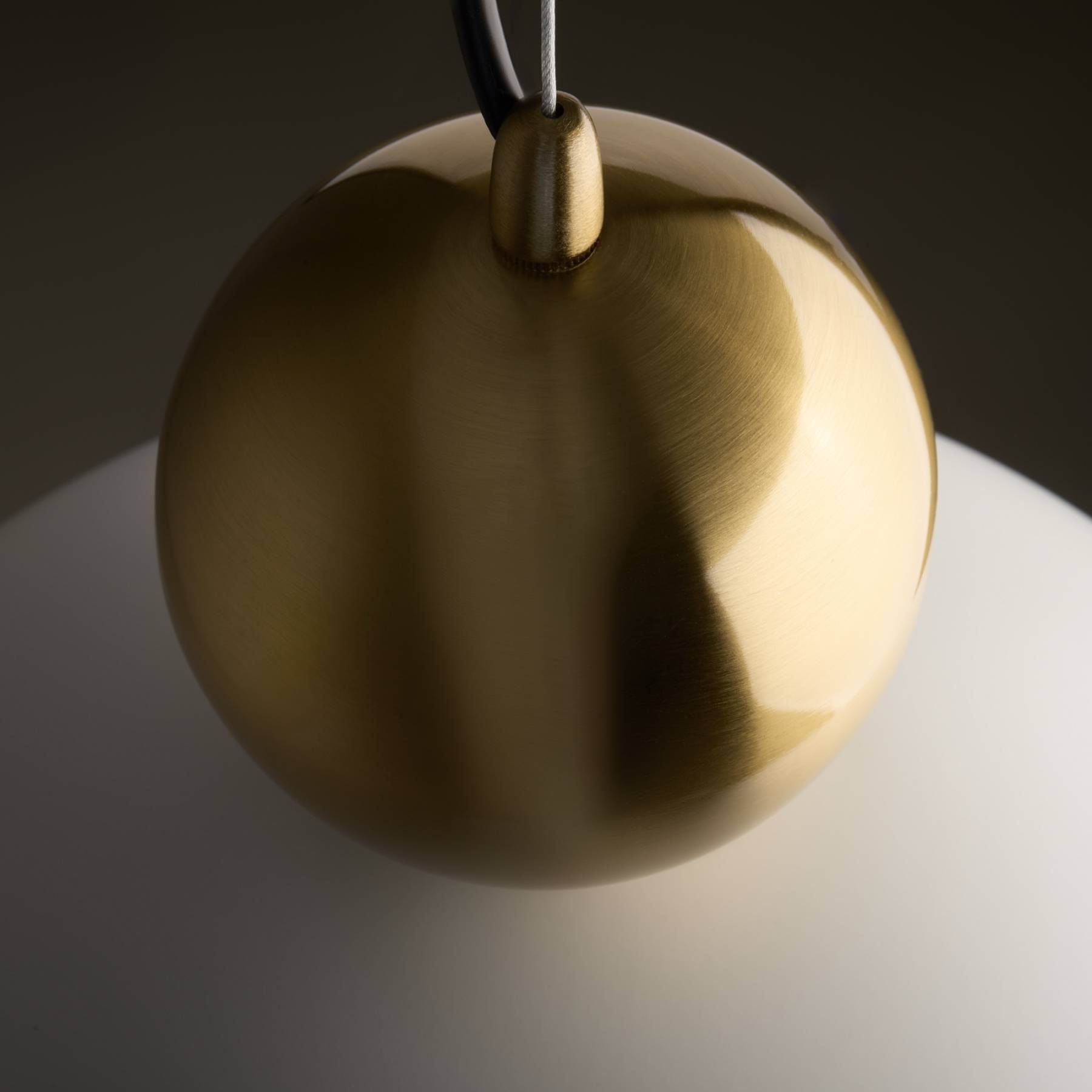 Арматура металл. Цвет арматуры матовый черный, белый. Плафоны металл. Внутри с шаровидным белым плафонов для рассеянного света. Плафоны имеют смещенный центр для крепления, украшены декоративным округлым элементом в латунном оттенке. Источник света лампа. Цоколь E27.
