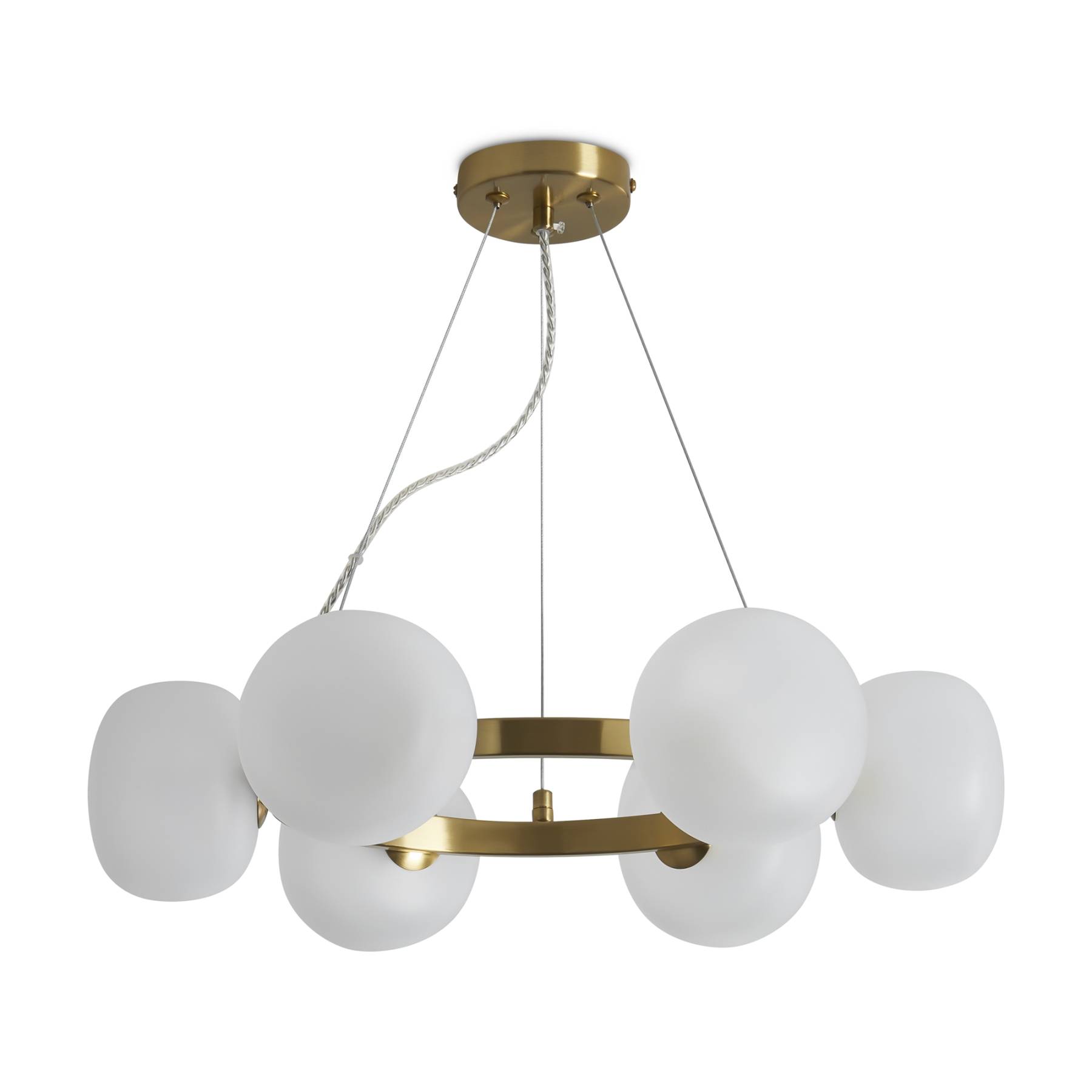 Арматура - металл. Цвет арматуры - латунь. Серия с необычной формой плафонов — немного приплюснутые, матовые белые. Настольные лампы и настенные бра выгнутой формы. Источник света лампа. Цоколь G9.