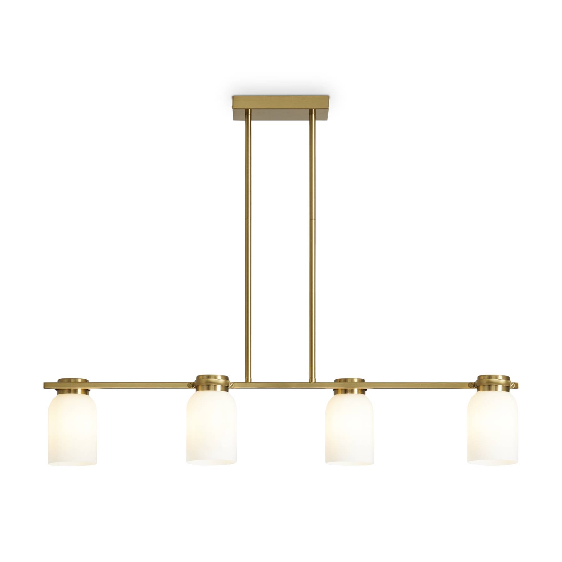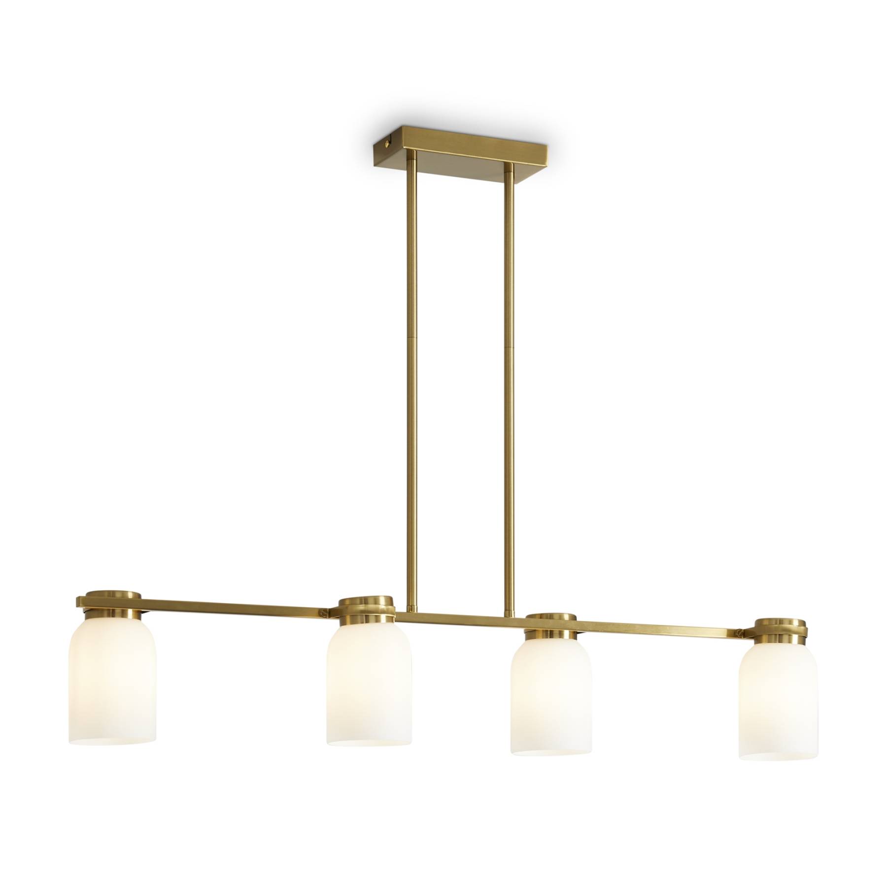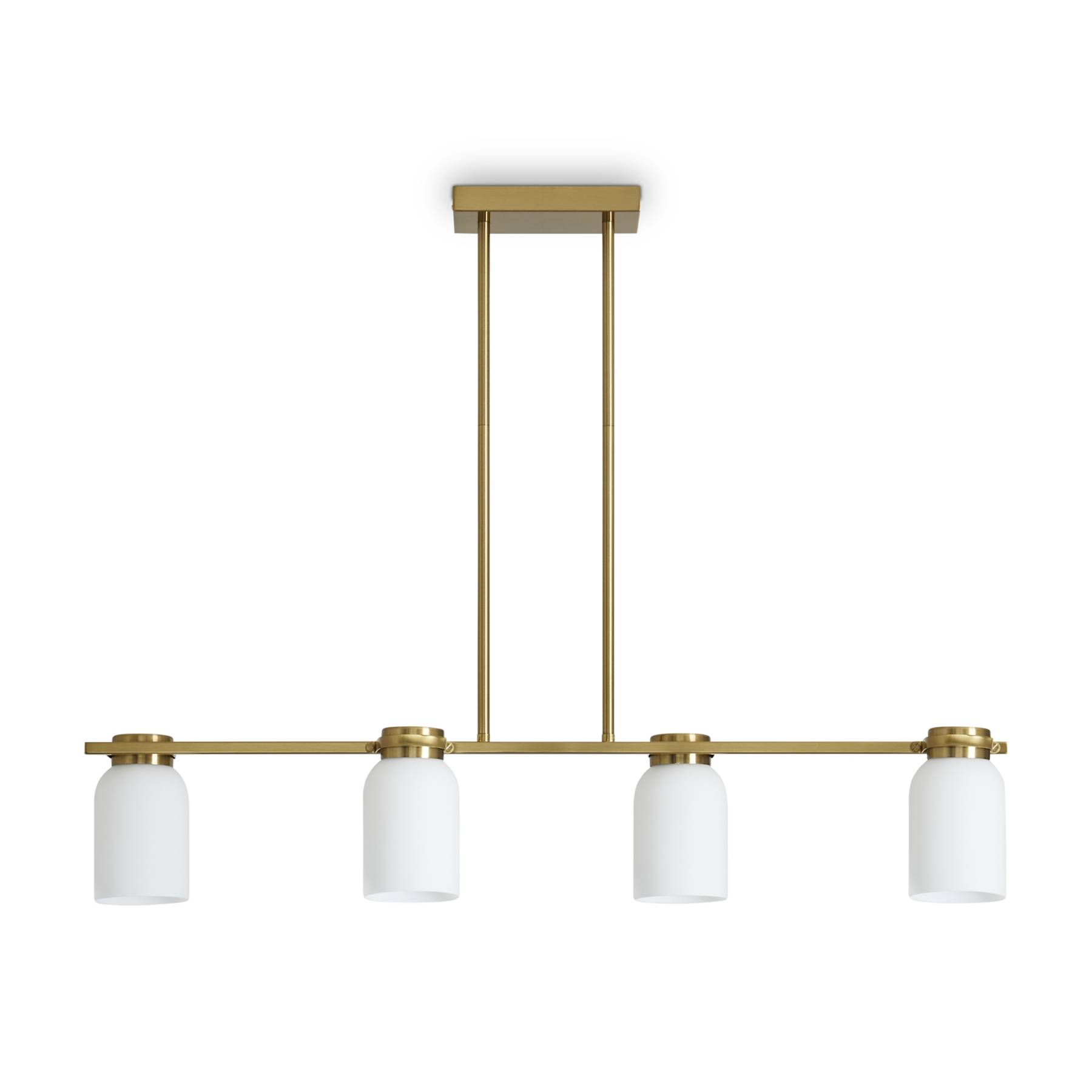 Арматура из металла. Цвет латунь. Плафоны из белого стекла новой необычной формы. Два варианта светильников — потолочные и бра. Подходит для помещений с низкими потолками. Источник света — лампа. Цоколь E14.